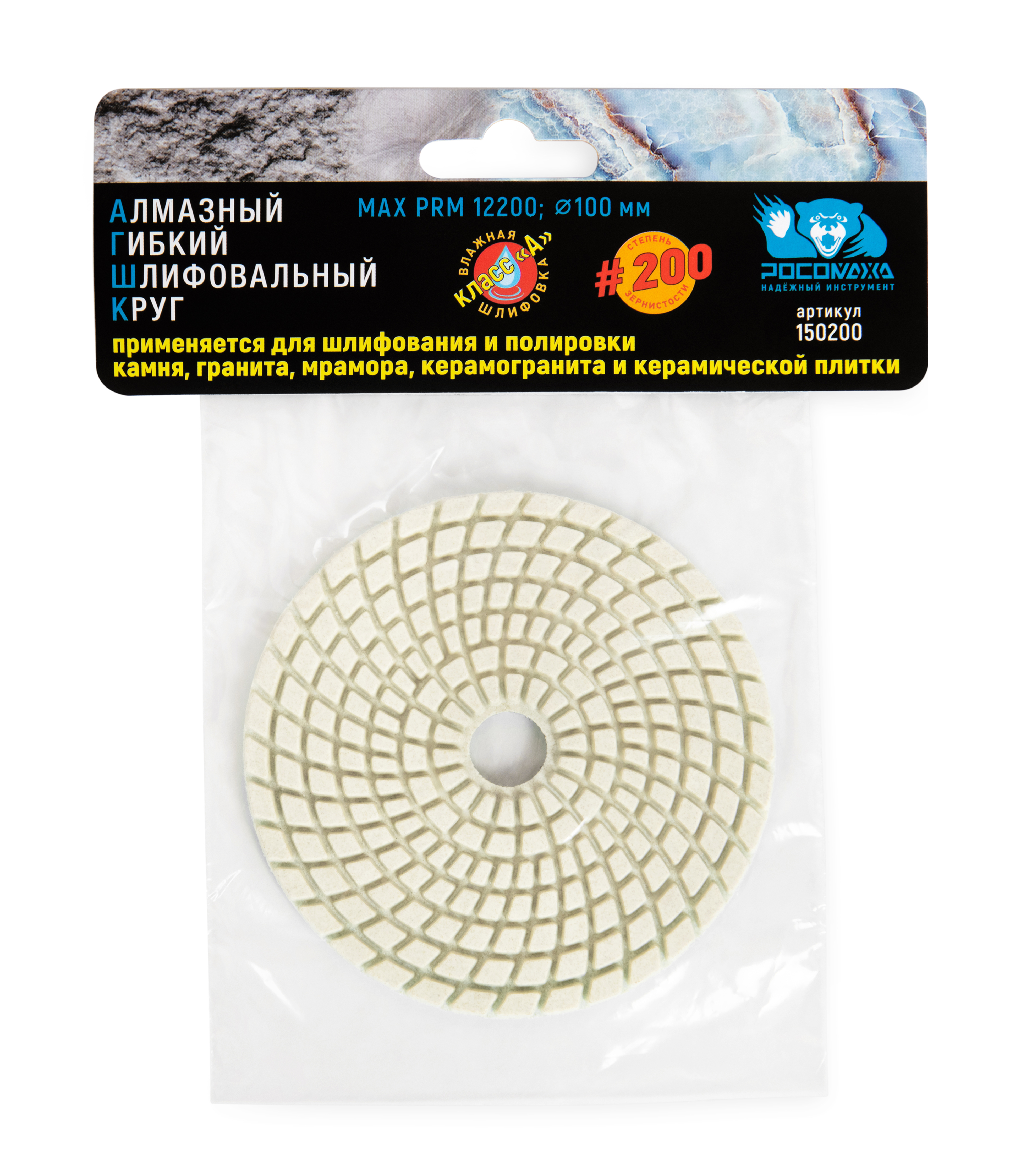 Алмазный гибкий шлифовальный круг 100 мм мокрая шлифовка зерно 200 "РОСОМАХА"
