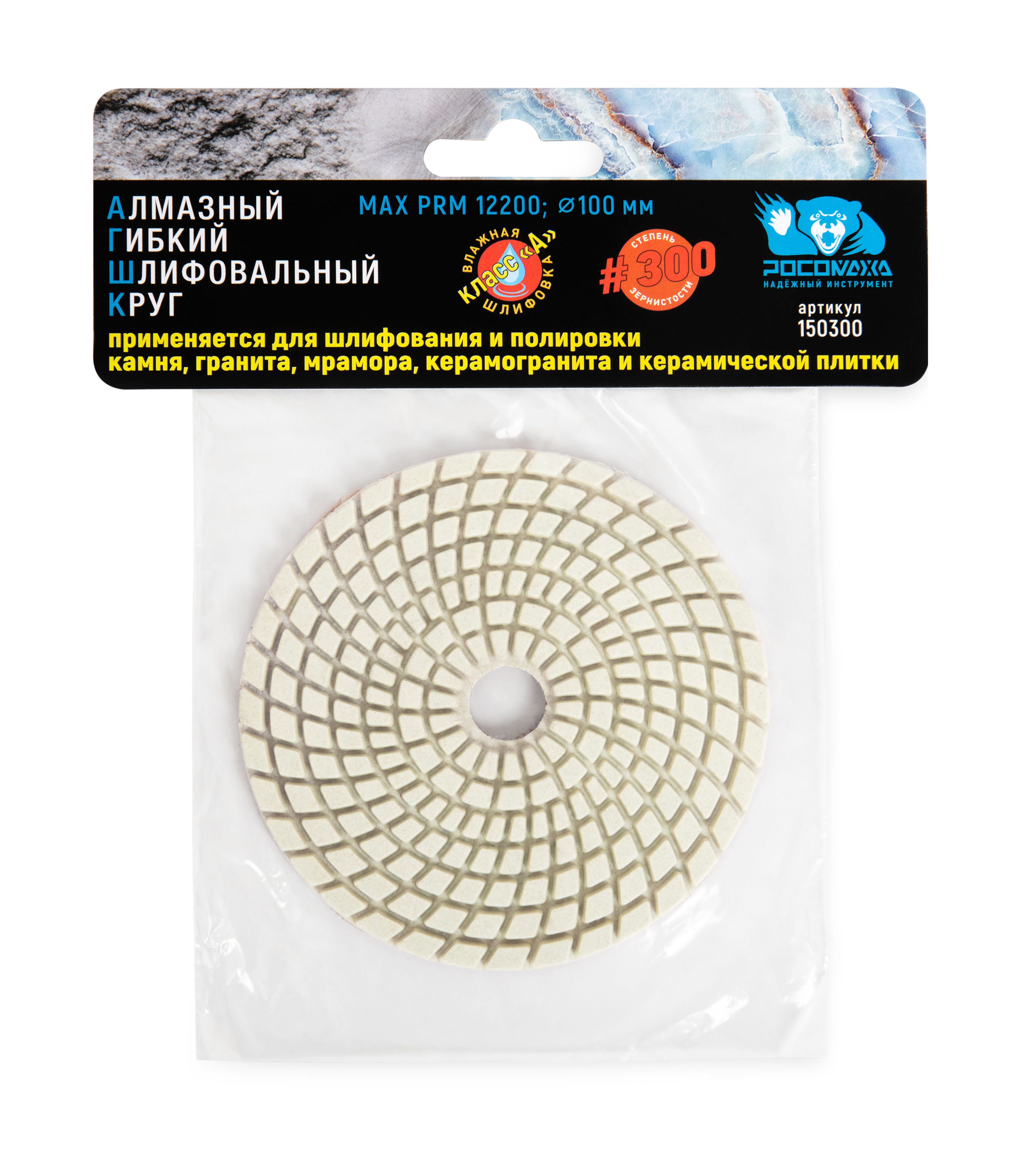 Алмазный гибкий шлифовальный круг 100 мм мокрая шлифовка зерно 300 "РОСОМАХА"