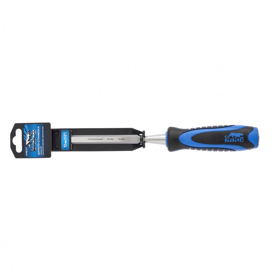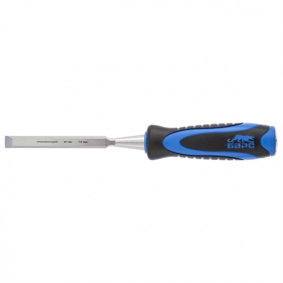 Долото-стамеска, плоская, 12 мм, двухкомпонентная рукоятка, металлический затыльник Барс