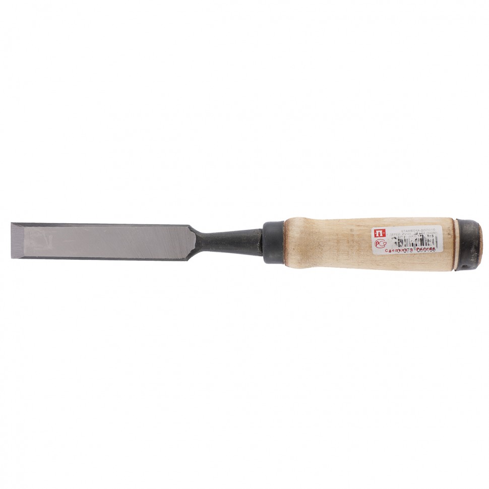 Плоское долото-стамеска Арефино 24260 с режущей частью шириной 20 мм и деревянной рукояткой — инструмент для столярных и плотницких работ. Пригодится для выборки и зачистки небольших прямоугольных пазов, снятия фасок в натуральной древесине любой твердости. По стамеске можно наносить удары киянкой или небольшим молотком, поэтому она легче врезается в материал и позволяет получить более ровный контур.ПреимуществаКачественное исполнение — полотно стамески изготовлено из конструкционной стали 65Г повышенной прочности.Высокий ресурс — полотно закалено до твердости 58-63 HRC на длину 0,7 рабочей части, поэтому режущая кромка долго сохраняет остроту.Стойкость к ударным нагрузкам — благодаря металлическому кольцу на тыльной стороне ручка не раскалывается от ударов молотком или киянкой.Надежная рукоятка — лаковое покрытие предотвращает ее преждевременное разрушение.