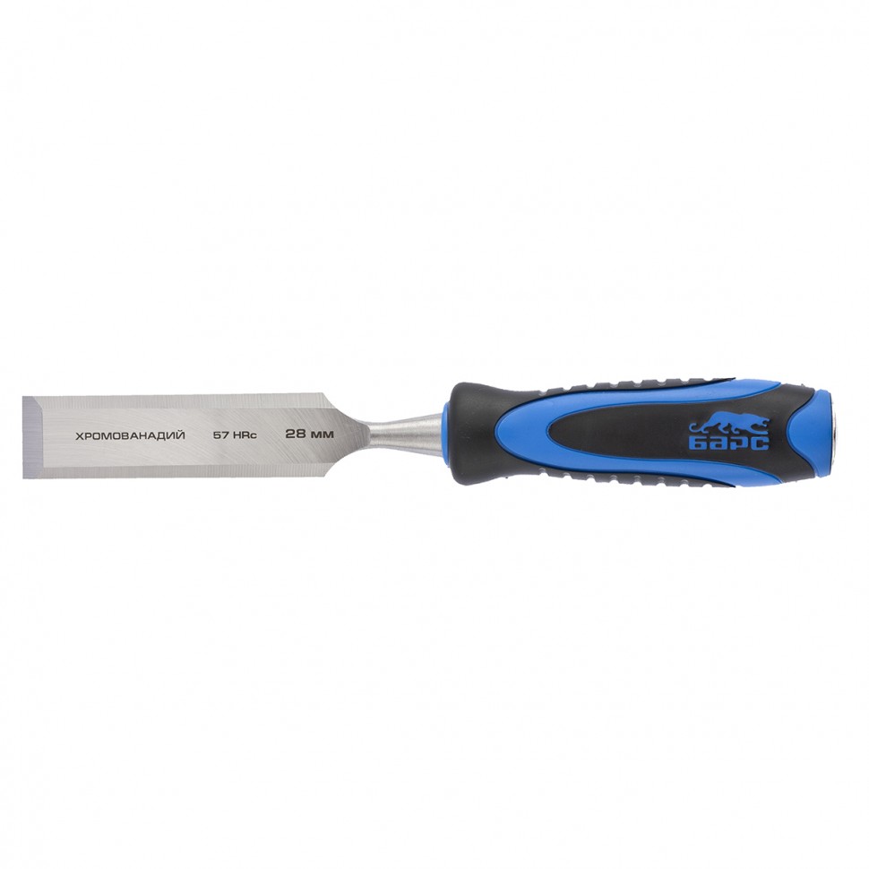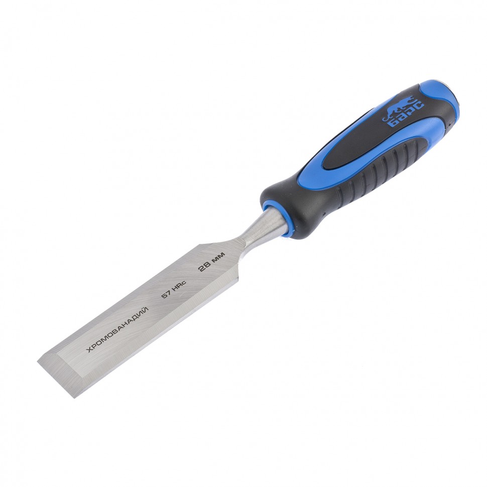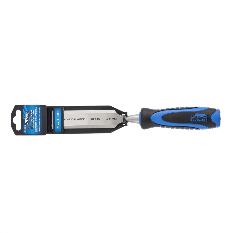 Долото-стамеска, плоская, 28 мм, двухкомпонентная рукоятка, металлический затыльник Барс