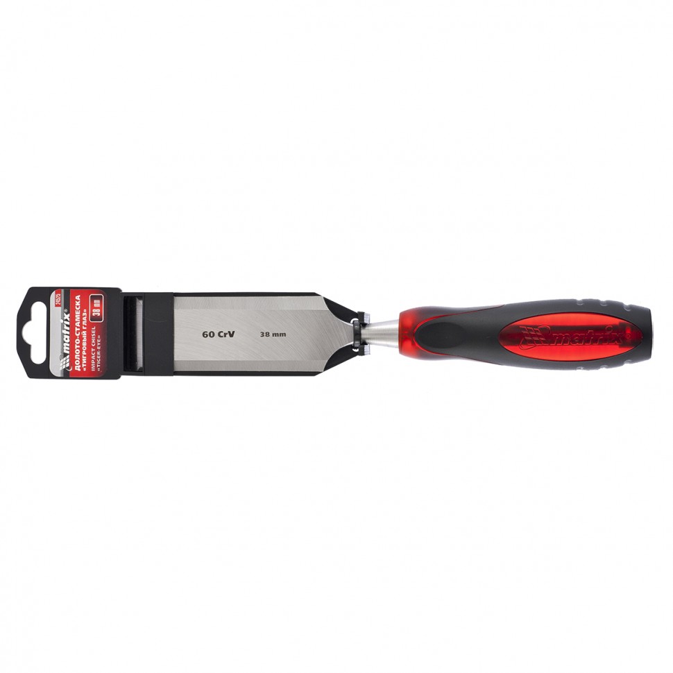Долото-стамеска Matrix «Тигровый глаз» 24525, 38 мм, с двухкомпонентной обрезиненной рукояткой, используется в столярном и плотницком деле, в производстве мебели. С его помощью можно вырезать углубления, формировать пазы, зачищать шипы и гнезда, снимать фаски. Долото-стамеска выдерживает удары киянкой или молотком, т.к. металлический затыльник защищает его от деформации.ПреимуществаПолотно выполнено из легированной стали хромованадиевой группы, поэтому отличается повышенной прочностью, стойкостью к износу и позволяет добиться необходимой твердости инструмента.Долото-стамеска обладает твердостью 65 HRC (0,7 длины рабочей части полотна), поэтому длительное время сохраняет режущие свойства.Острое как бритва лезвие обработано на заводе под углом 20-35°, повторная заточка потребуется минимум через 6 месяцев.Конструкцией предусмотрен металлический стержень, проходящий сквозь рукоятку, что повышает прочность и долговечность инструмента.Двухкомпонентная рукоятка с резиновыми вставками и упорами под пальцы не скользит