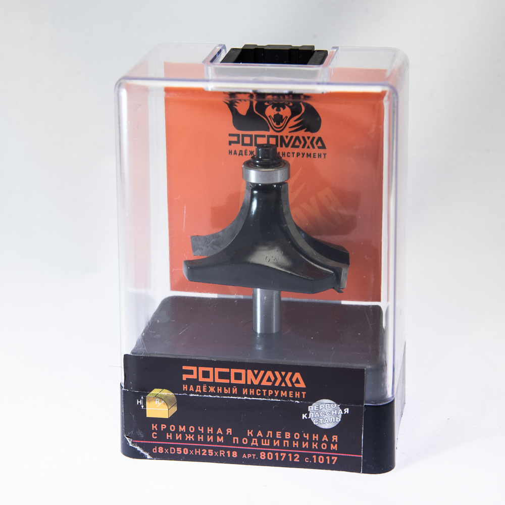 Фреза кромочная калевочная с нижним подшипником d8*D50*H25*R18 "РОСОМАХА" серия 1017