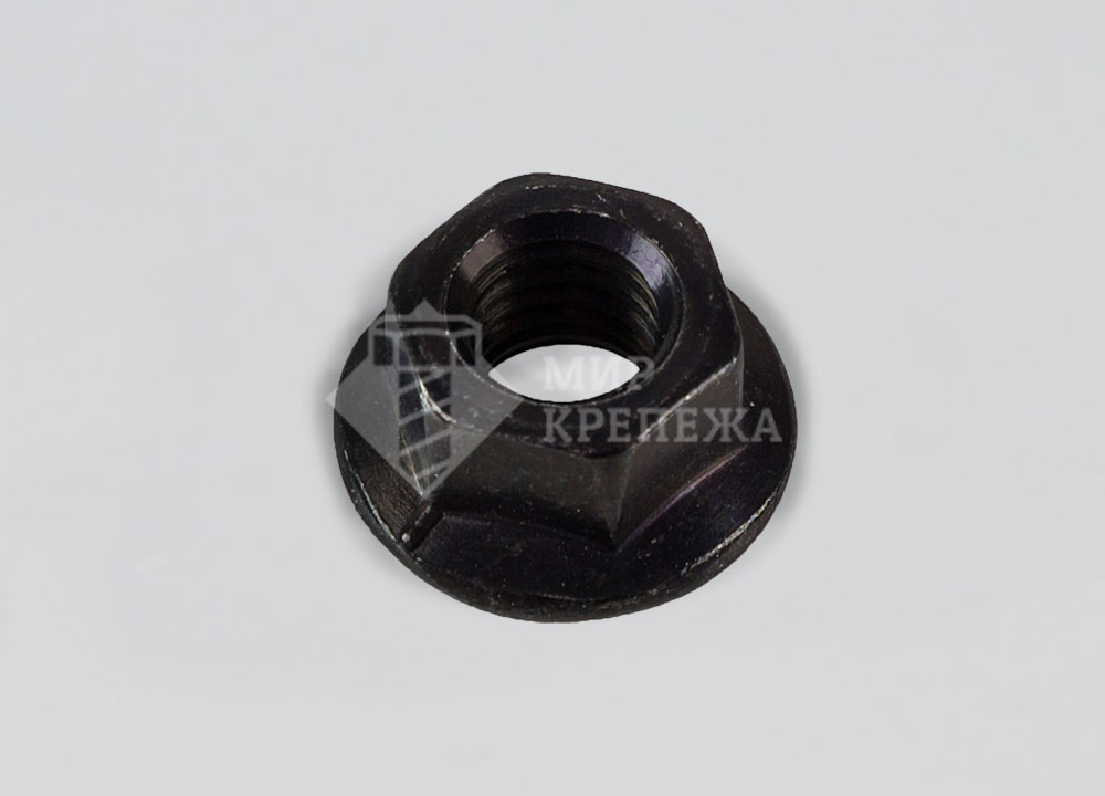 Гайка фланцевая, предназначена для создания надежных болтовых соединений, при ее использовании нет необходимости в использовании шайбы. Фланцевая часть имеет насечки в виде зубцов на кромке и защищает изделие от самораскручивания. Использование фланца позволяет использовать изделие на участках с вибрационной нагрузкой.