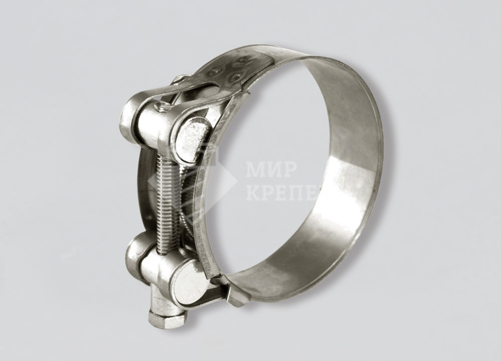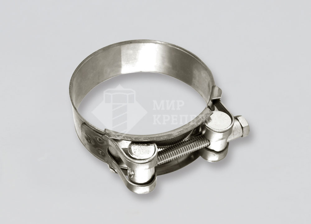 Силовые шарнирные хомуты для армированных и толстостенных шлангов, гидро-пневмоприводов машин, ирригации, дренажных насосов, горно-буровой техники и др. Эти хомуты применяются для соединения шлангов с повышенной жесткостью (твёрдостью) или армированных проволокой или сеткой, работающих в установках высокого давления и вакуума. Изготовлены из высококачественной нержавеющей стали. Толщина защитного покрытия 10-14 микрон. Имеют отбортовку по краям ленты. Для крепления корпуса гайки применяется три сварных точки, что повышает жесткость узла. Наиболее прочные хомуты среди аналогов.