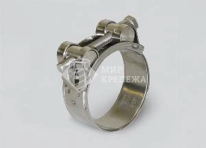 Силовые шарнирные хомуты для армированных и толстостенных шлангов, гидро-пневмоприводов машин, ирригации, дренажных насосов, горно-буровой техники и др. Эти хомуты применяются для соединения шлангов с повышенной жесткостью (твёрдостью) или армированных проволокой или сеткой, работающих в установках высокого давления и вакуума. Изготовлены из высококачественной нержавеющей стали. Толщина защитного покрытия 10-14 микрон. Имеют отбортовку по краям ленты. Для крепления корпуса гайки применяется три сварных точки, что повышает жесткость узла. Наиболее прочные хомуты среди аналогов.