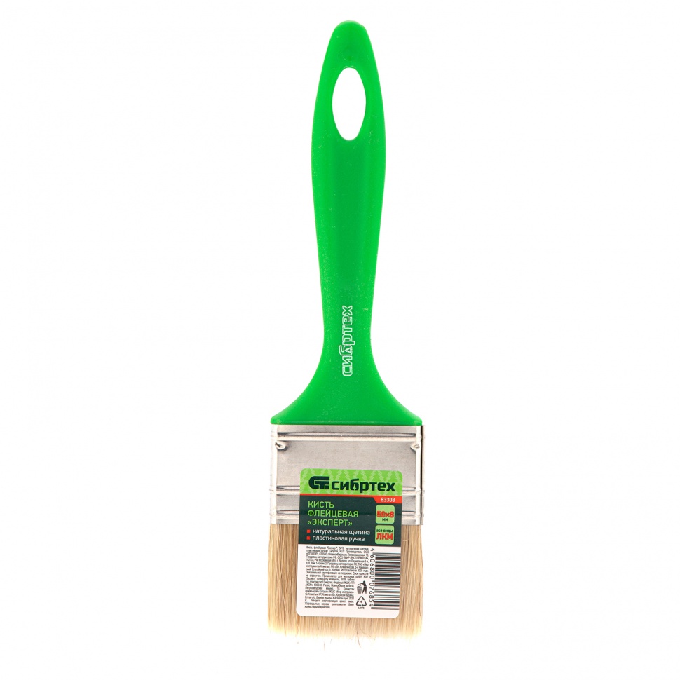 Кисть флейцевая "Эксперт", 50 x 8, натуральная щетина, пластиковая ручка Сибртех