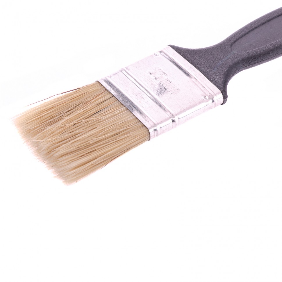 Флейцевая кисть Сибртех «Стандарт» 82503, 35*6, с натуральной щетиной и пластиковой ручкой оптимально подходит для финишной обработки поверхностей и устранения мелких дефектов после использования кистей с более жесткой щетиной. Кисточкой небольшой ширины удобно окрашивать углы, мелкие детали, плинтуса и рамы. Рабочая часть выполнена из свиной щетины с добавлением искусственной, таким образом достигается ее высокая износостойкость и устойчивость к растворителям.ПреимуществаВысокое качество окрашивания — щетина двойной выварки не содержит жира и посторонних примесей.Эффективность работы — кисть с расщепленной на концах щетиной хорошо впитывает, удерживает и отдает краску.Металлический бандаж — он обеспечивает надежную фиксацию щетины, а за счет антикоррозионного покрытия не боится воздействия влаги.Пластиковая ручка — кистью удобно работать, т.к. она хорошо ложится в руку.Подвесное хранение — на ручке предусмотрено продолговатое отверстие.