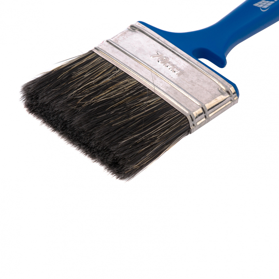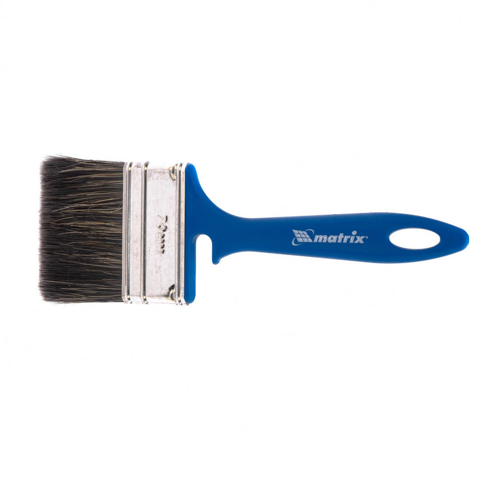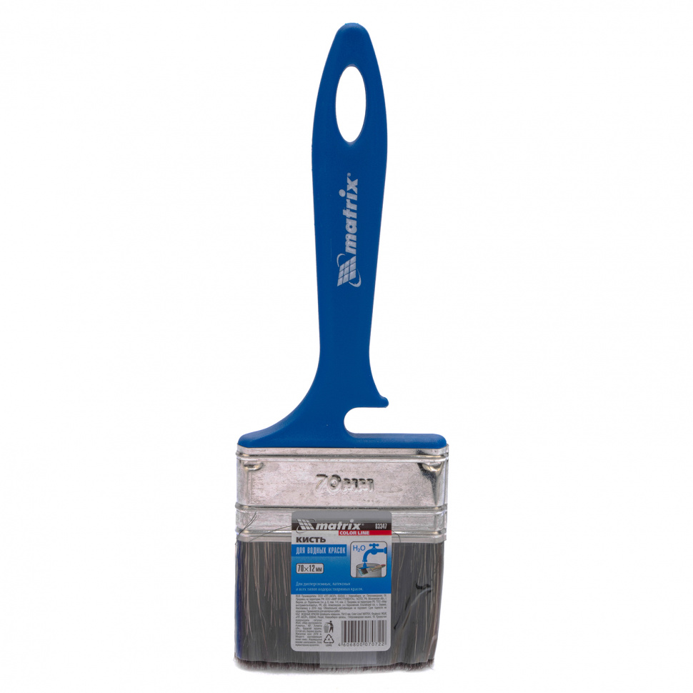 Флейцевая кисть Matrix Color Line «ВОДНЫЕ КРАСКИ» 83347 шириной 70 мм и толщиной 12 мм разработана специально для использования с составами на водной основе, в том числе деревообрабатывающими. Комбинированная щетина оптимальна для работы с водными лакокрасочными материалами — искусственные волокна препятствуют деформации, а натуральные удерживают большой объем краски. Кисть подходит для работы на небольших участках или в труднодоступных местах.ПреимуществаЩетина обладает высокой износоустойчивостью, что продлевает срок службы инструмента.Кончики щетинок расщеплены, что повышает краскообменные свойства и обеспечивает высокое качество работ.Клинья из пластика не деформируются при контакте с ЛКМ, мытье и замачивании кисти.Бандаж с антикоррозионным покрытием не ржавеет, поэтому кисть можно надолго замачивать в воде.Удобная пластиковая ручка комфортна при длительной работе.Кисть удобно хранить — специальная форма рукоятки позволяет закрепить кисть на краю банки или ведра, а отверстие в верхней части служит для под