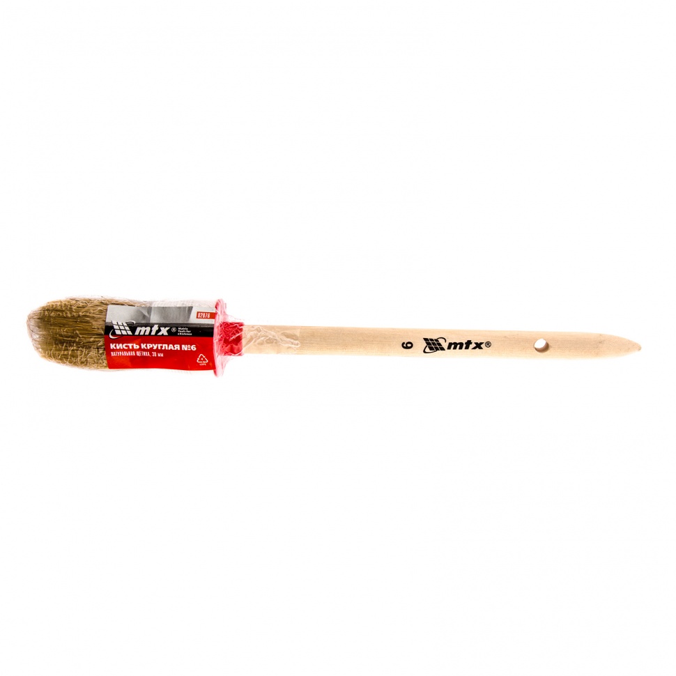 Кисть круглая № 6 (30 мм), натуральная щетина, деревянная ручка MTX