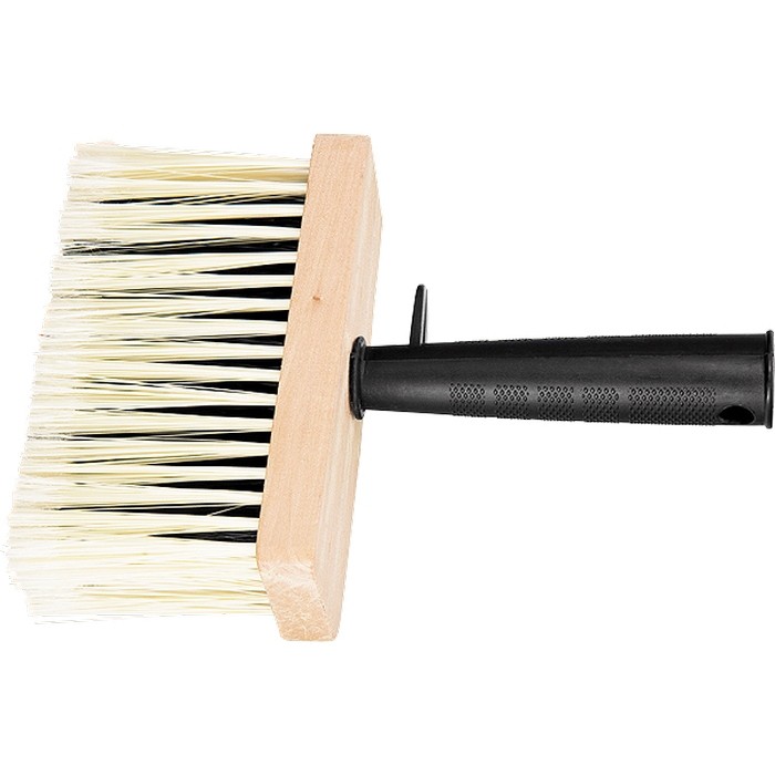 Кисть-макловица MTX 84088, 150 х 70 мм, с искусственной щетиной, деревянным корпусом и пластмассовой ручкой, предназначена для нанесения лакокрасочных материалов и клеевых составов на участки большой площади — стены, потолки, фасады. Искусственный ворс не впитывает воду и устойчив к растворителям, поэтому кисть подходит для работ с грунтовками, лаками, водно-дисперсионными и масляными красками.ПреимуществаЩетина тщательно проклеена и надежно закреплена в деревянном корпусе, поэтому не осыпается при многократном использовании.Щетина расщеплена на концах, за счет чего способна набирать и равномерно отдавать большой объем лакокрасочного материала.Полая рукоятка адаптирована под использование удлиняющих стержней, что позволяет проводить работы на большой высоте и в труднодоступных местах без использования подмостей или стремянки.При помощи специального выступа на рукоятке кисть можно закрепить на краю ведра, ванночки или банки с краской.Для удобства хранения предусмотрено отверстие в ручке, за которое кисть можно