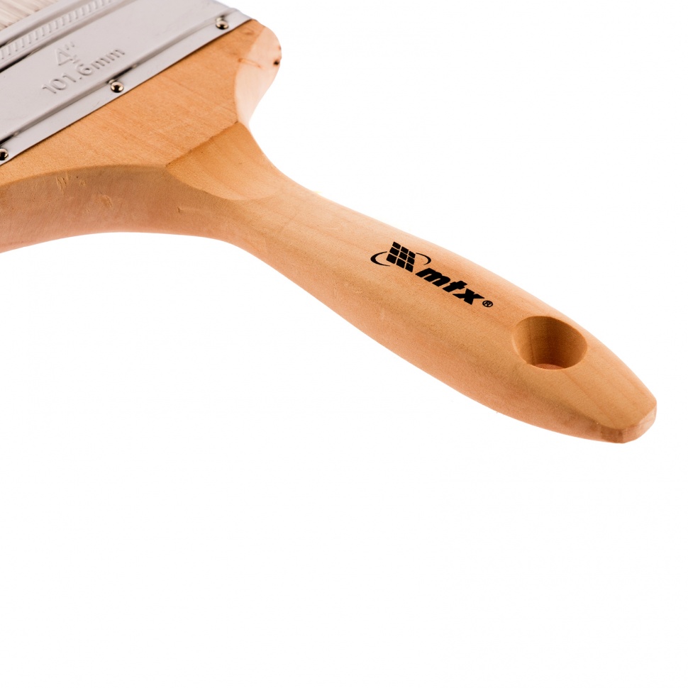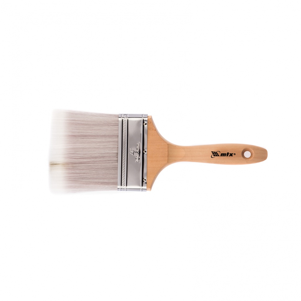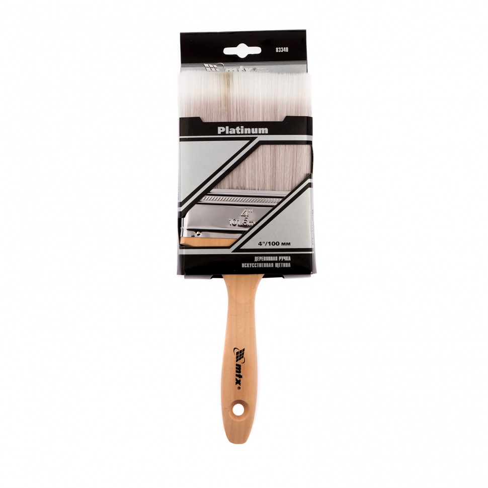 Плоская кисть MTX Platinum 83340 шириной 4 дюйма, с искусственной щетиной и деревянной ручкой, пригодится при проведении малярных работ. Она предназначена для работы с красками на водной основе. Кисть с мягкой и упругой щетиной оптимальна для нанесения покрытий на гладкие и слегка шероховатые поверхности. Кисть шириной 100 мм лучше всего подходит для окрашивания больших поверхностей.ПреимуществаЩетина тщательно проклеена, закреплена с помощью клиньев и бандажа.Антикоррозийное покрытие защищает бандаж, предотвращая образование ржавчины.Искусственная щетина обладает повышенной износостойкостью и не теряет упругость при взаимодействии с водорастворимыми лакокрасочными материалами.Шлифованная рукоятка из твердых пород дерева удобно ложится в руке и максимально комфортна при длительной работе.На рукоятке предусмотрено отверстие для подвешивания.