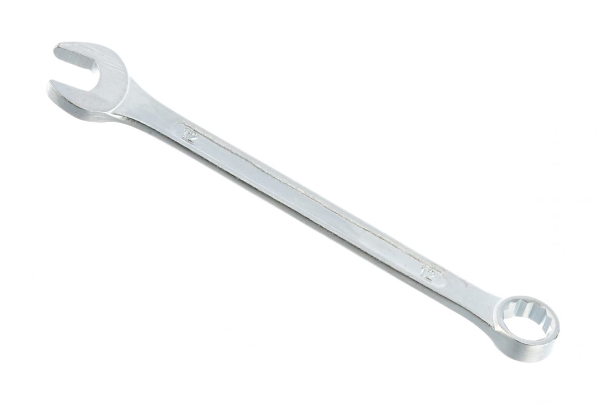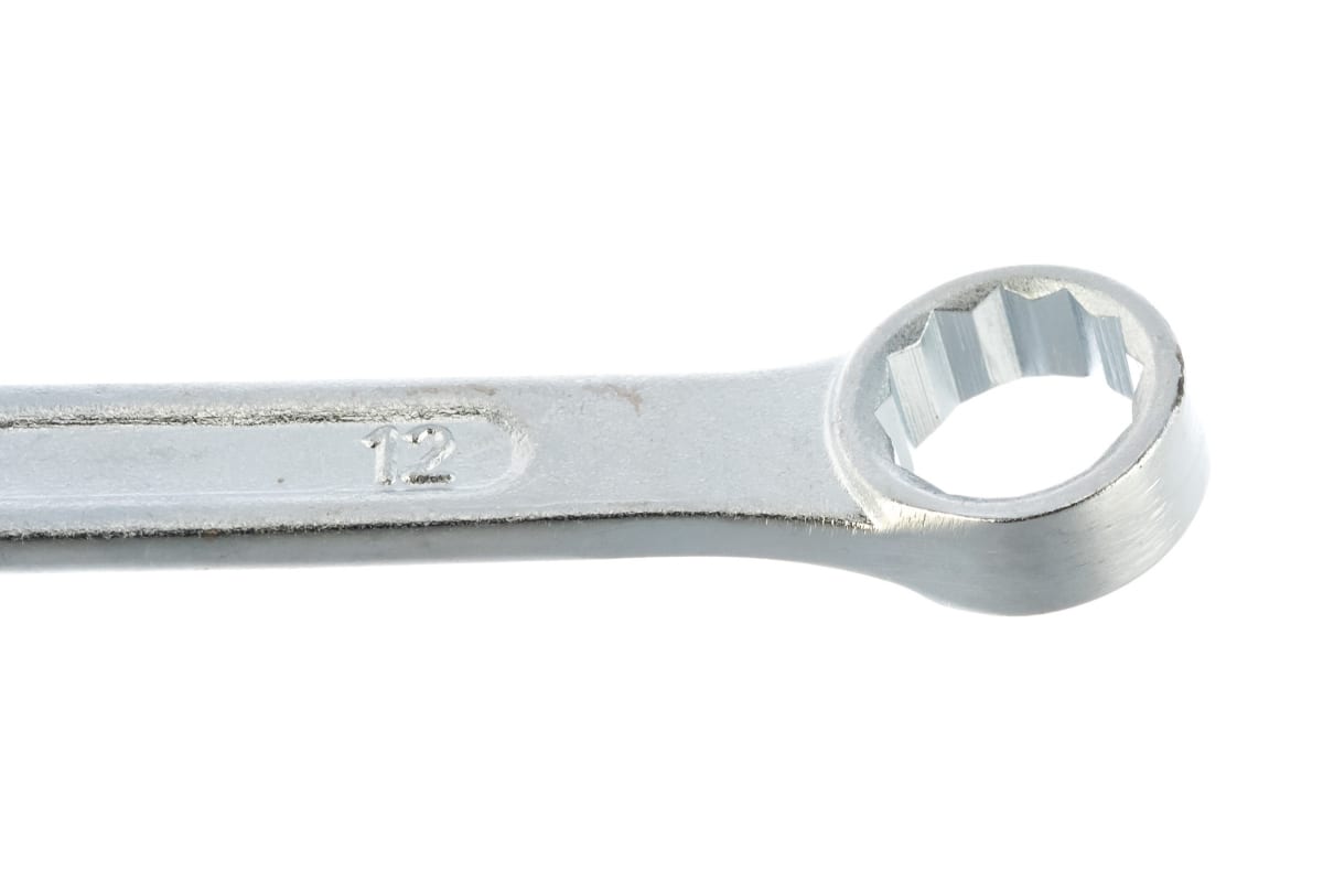 Комбинированный ключ Sparta 150395, 12 мм, хромированный — слесарно-монтажный инструмент для работы с резьбовыми соединениями. 12-гранная накидная головка обеспечивает надежный контакт с поверхностью крепежа, а рожковый зев дает возможность работать там, где применение кольцевого затруднено. Ключ пригодится в мастерской, гараже, будет полезен во время строительства и ремонта.ПреимуществаКлюч изготовлен из углеродистой стали марки 45, чем обеспечивается его прочность и хороший ресурс.Твердость рабочих частей ключа составляет 42 HRC, это соответствует требованиям ГОСТ.Хромированная поверхность не подвержена коррозии, что продлевает срок службы инструмента.Кольцевая головка смещена на 15 градусов относительно плоскости ключа, это облегчает монтаж в труднодоступных местах.