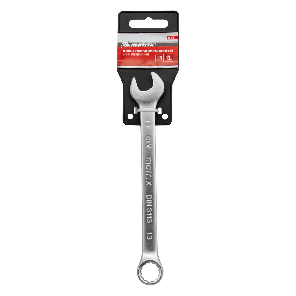 Ключ комбинированный, 13 мм, CrV, матовый хром Matrix