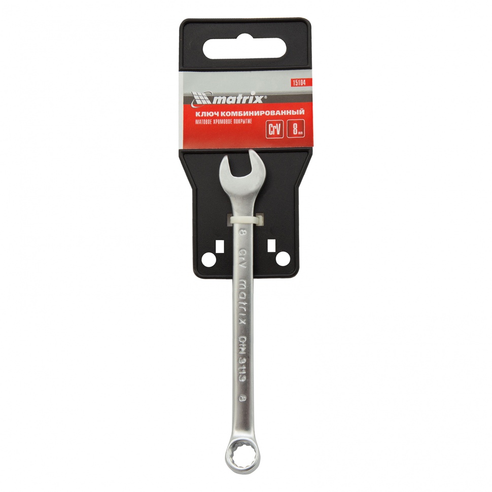 Ключ комбинированный, 8 мм, CrV, матовый хром Matrix