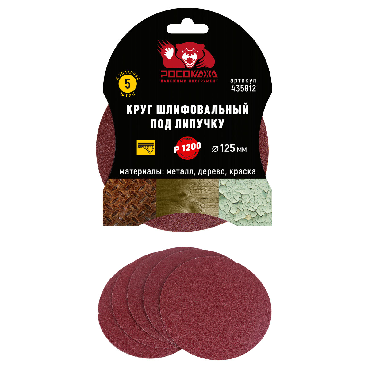 Круг шлифовальный под липучку 125 мм зерно 1200 (5 шт./уп.) "РОСОМАХА"