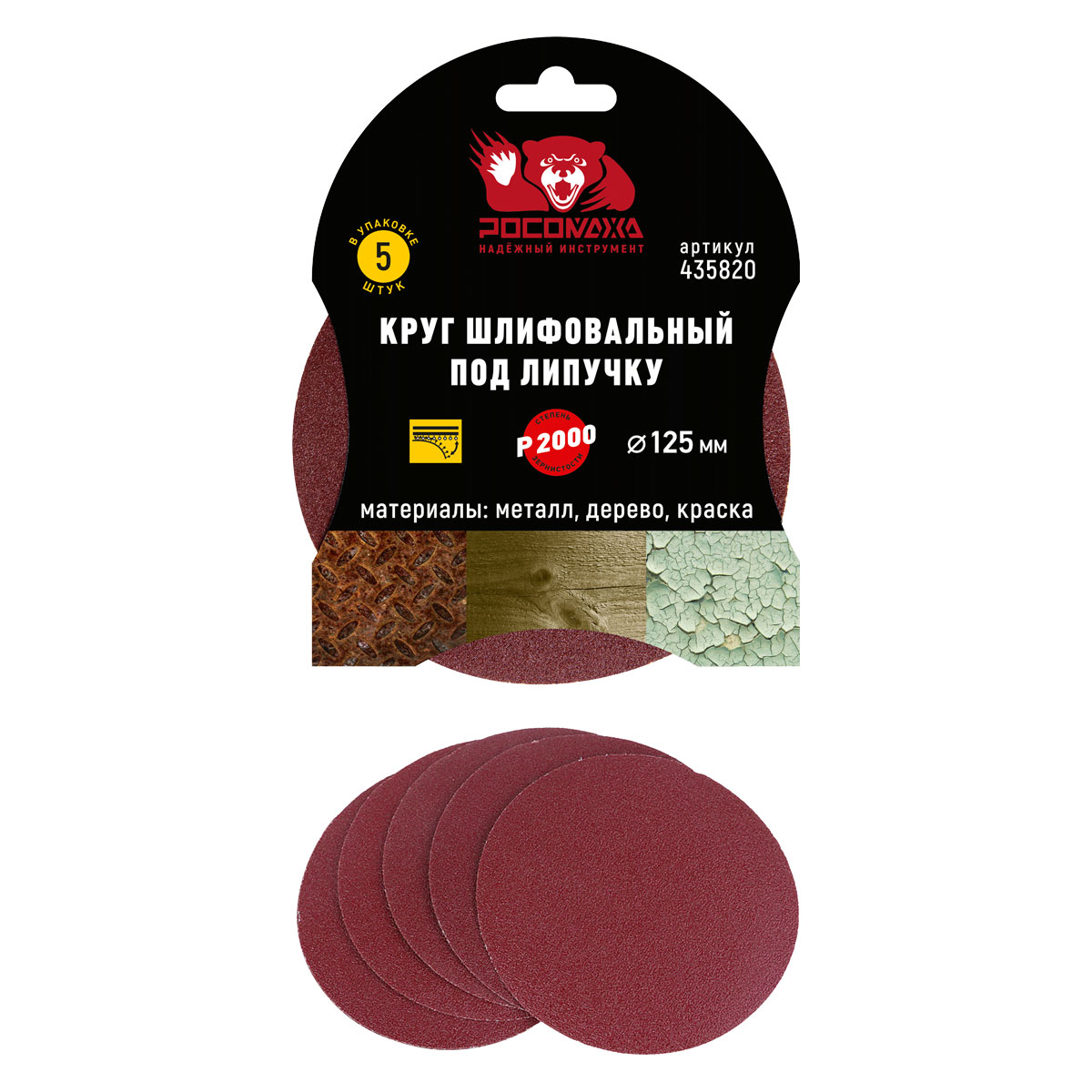 Круг шлифовальный под липучку 125 мм зерно 2000 (5 шт./уп.) "РОСОМАХА"