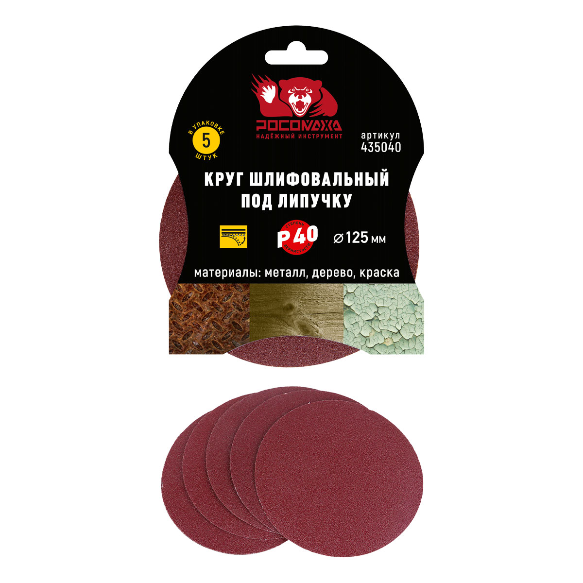 Круг шлифовальный под липучку 125 мм зерно 40 (5 шт./уп.) "РОСОМАХА"