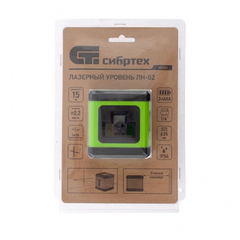 Лазерный уровень ЛН 02, 15 м, 635 нм, резьба 1/4" Сибртех
