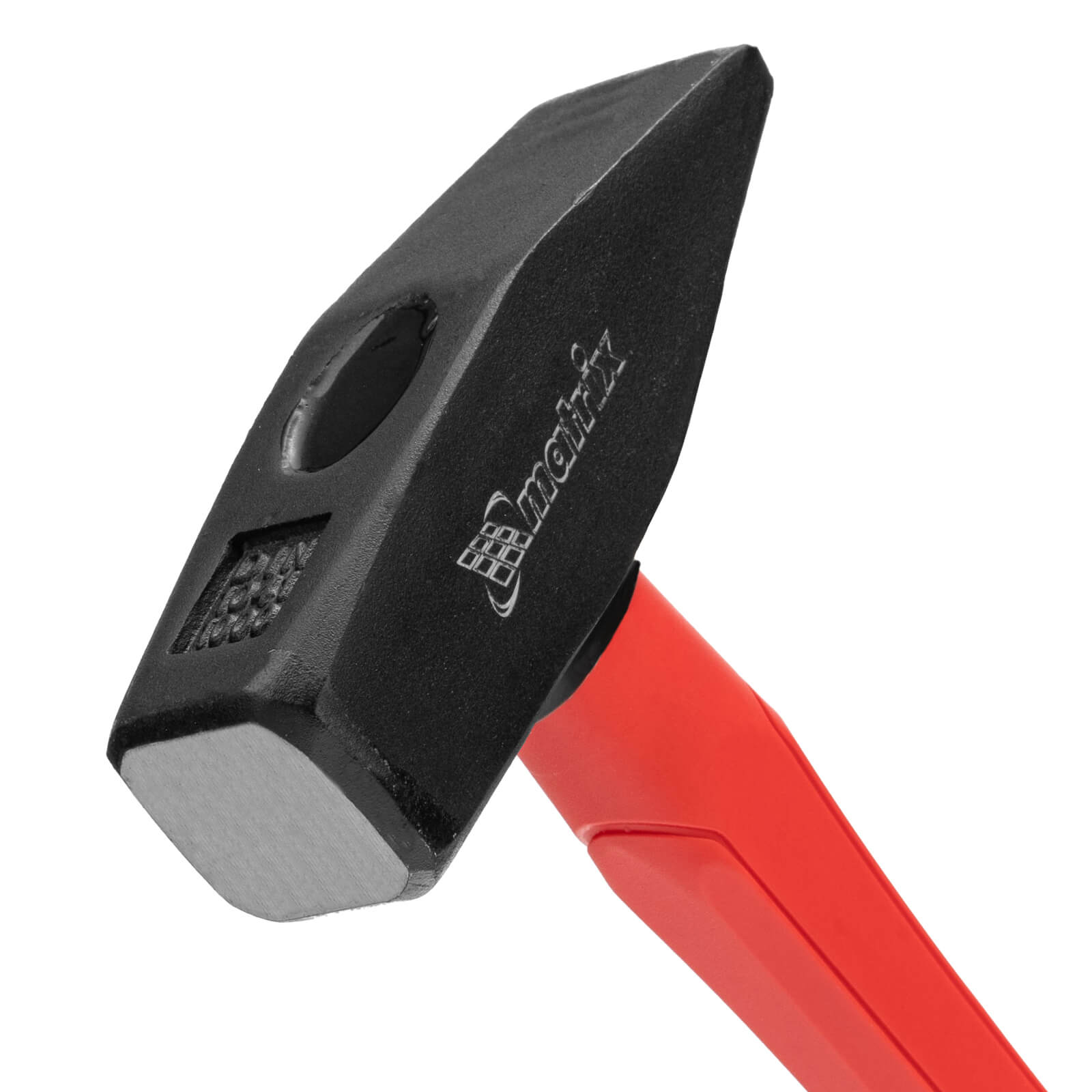 Слесарный молоток Matrix «optimal» 10383 с квадратным бойком весом 1000 г и фибергласовой обрезиненной рукояткой используется при работе с металлическими заготовками, а также для забивания гвоздей и других крепежных элементов. Позволяет вбивать гвозди или штыри в труднодоступных местах. Предназначен для профессионального и частного применения.ПреимуществаОтфрезерованная головка из стали 45 марки прошла селективную закалку, имеет высокий показатель прочности и износостойкости.Рабочие части твердостью 40-45 HRC не деформируются при ударных нагрузках.Отшлифованная и покрытая черным лаком головка не подвержена образованию коррозии.Головка закреплена на рукоятке при помощи эпоксидной смолы и не соскочит при ударе.Фибергласовая рукоятка снижает отдачу, что делает работу более комфортной и эффективной.На рукоятке имеются резиновые накладки, предотвращающие ее проскальзывание в руках.Молоток изготовлен из материалов, устойчивых к агрессивным воздействиям, поэтому может использоваться практически в любых условиях.