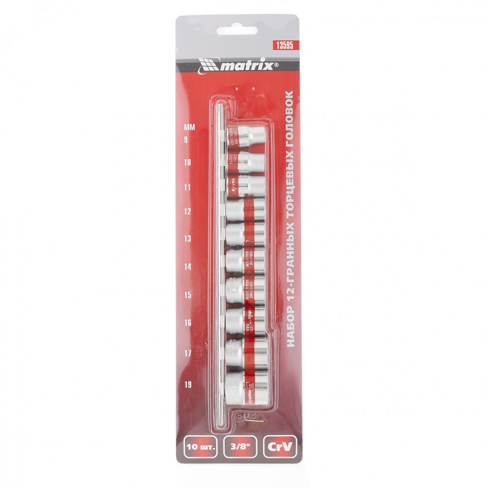 Набор торцевых головок, 3/8, двенадцатигранные, CrV, 10 шт, 9-19 мм Matrix