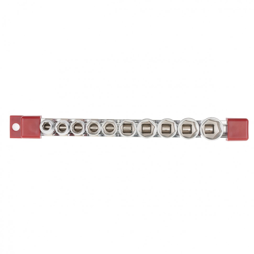 Набор торцевых головок Matrix 13558 с посадочным гнездом 3/8 дюйма и шестигранным профилем, CrV, 10 шт., 8-19 мм, предназначен для работы с резьбовыми соединениями. Он пригодится для бытового ремонта, будет полезен сантехнику, слесарю, авторемонтнику.ПреимуществаВ комплекте 10 насадок диаметром от 8 до 19 мм, которые подходят для самых распространенных крепежей.Торцевые головки выполнены из хромованадиевой стали, поэтому выдерживают повышенные нагрузки.Полированное хромоникелевое покрытие обеспечивает антикоррозионную стойкость.Для головок предусмотрена плашка-держатель, поэтому они всегда будут под рукой и не потеряются.Ярко-красные полоски позволяют быстро найти нужную торцевую головку в рабочем пространстве.