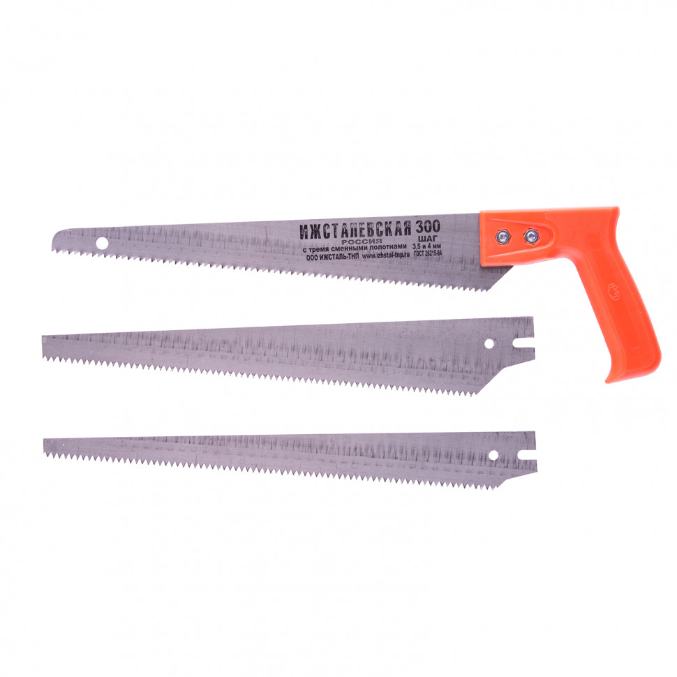 Ножовка по дереву, 300 мм, 3 сменных полотна, пластиковая рукоятка (Ижевск) Россия