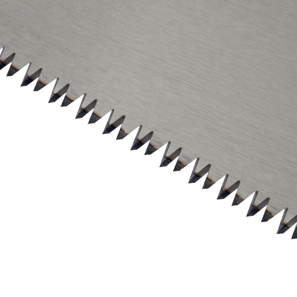 Ножовка по дереву DENZEL 24145 предназначена для столярных работ- распиловка заготовок из древесины, ДСП и OSB. Может производить продольный и поперечный распил.Ножовка обладает высокой производительностью благодаря агрессивной трехгранной, многоступенчатой заточке зубьев, которая обеспечивает идеальную геометрию и высокую остроту зуба.Преимущества:Пильное полотно изготовленное из японской стали SK-5 с шагом зуба 9TPI, позволяет выполнять более быстрый рез.Закалка ТВЧ обеспечивает дополнительную твердость зуба 55-58 HRC.Благодаря эргономичной форме и рифленой поверхности, обрезиненная рукоятка удобно ложится в руку и не скользит, обеспечивая комфорт во время интенсивной работы.