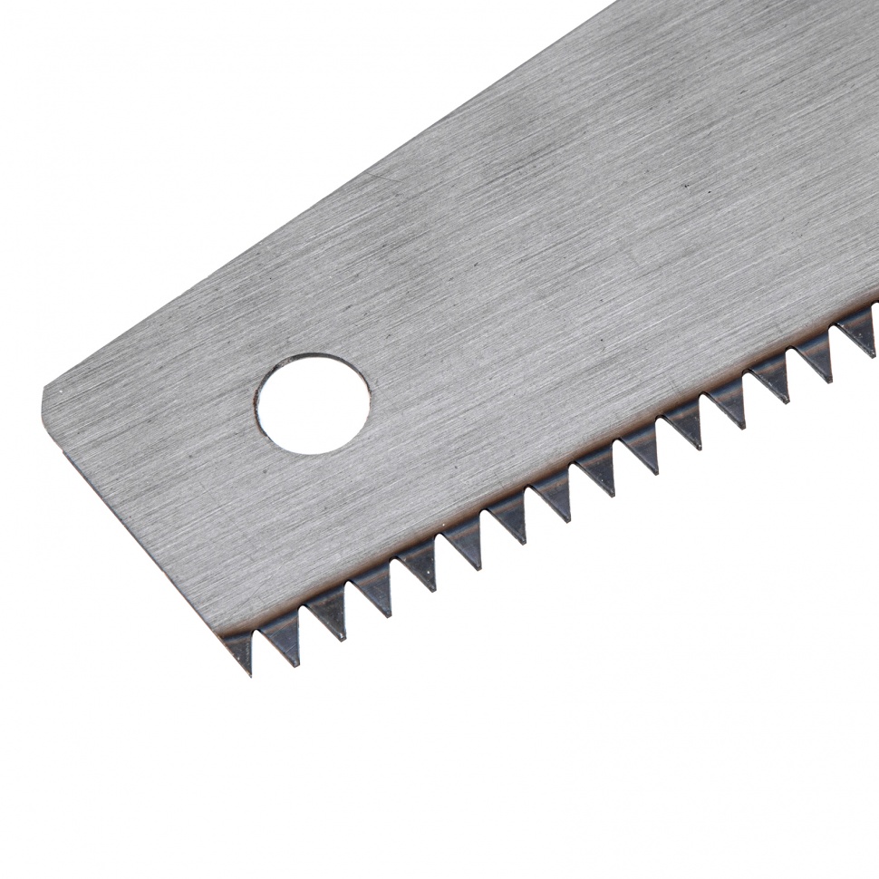Ножовка по дереву Sparta 232365 с полотном длиной 500 мм, калеными зубьями с шагом 5-6 TPI и пластиковой рукояткой, предназначена для продольно-поперечного распиливания древесины. Благодаря зубьям с 2D-заточкой подходит для двухстороннего реза. Режущую кромку можно перетачивать. Ножовка используется в столярном и плотницком деле, а также полезна дома и на даче.ПреимуществаПрочность — полотно изготовлено из пружинной холоднокатаной стали 65Mn, характеризующейся стойкостью к постоянным нагрузкам.Высокий ресурс — зубья закалены до твердости 55 HRC и хорошо держат заточку.Производительность — крупные зубья с шагом 5-6 TPI обеспечивают быстрый рез.Устойчивость к коррозии — на полотно нанесено защитное лаковое покрытие.Надежность — полотно крепко зафиксировано в рукоятке при помощи винтов.Долговечность — рукоятка выполнена из легкой и прочной пластмассы, устойчивой к повреждениям.