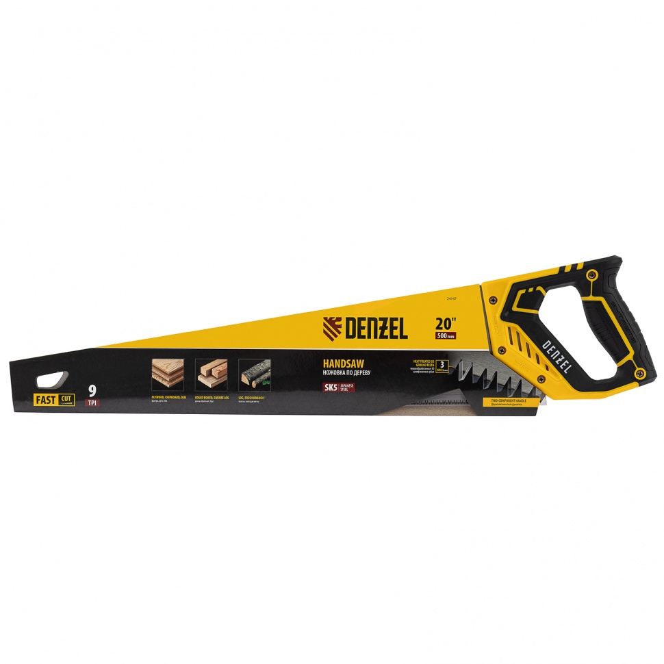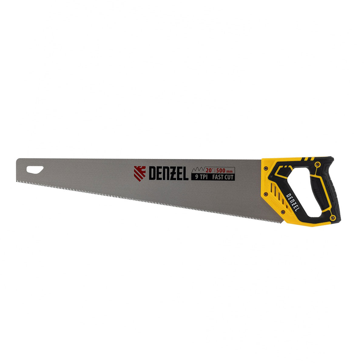 Ножовка по дереву, 500 мм, 9 TPI, зуб 3D, двухкомпонентная рукоятка Denzel