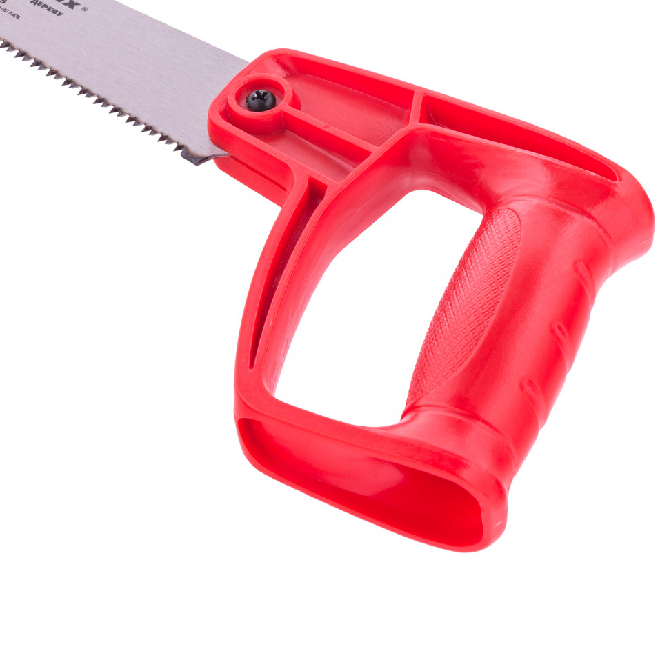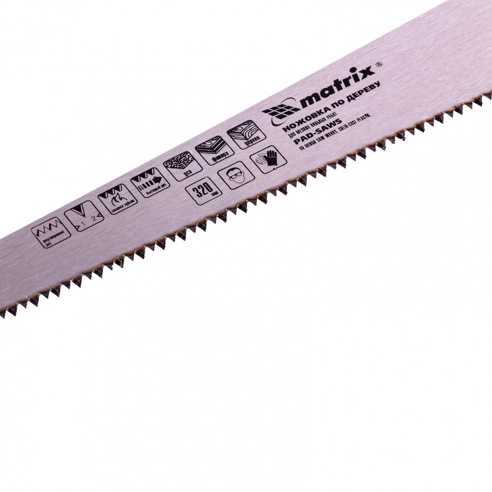 Ножовка по дереву Matrix 23106 с полотном длиной 320 мм, с цельнолитой однокомпонентной рукояткой, предназначена для мелких пильных работ и используется в столярном деле. Зубья с двухгранной заточкой имеют шаг 8 TPI, что обеспечивает быстрый рез. Если режущая кромка затупится, ее можно переточить. Ножовкой пилят древесину, фанеру и ДСП.ПреимуществаПолотно обладает высокими прочностными характеристиками и хорошо сохраняет прямолинейность, поскольку изготовлено из пружинной стали 65Mn.Режущая часть долго сохраняет рабочие свойства, поскольку ее зубья закалены.Поверхность полотна защищена от коррозии лаковым покрытием.Цельнолитая пластиковая рукоятка не скользит в ладони, т.к. имеет рельефную поверхность.Высокое качество инструмента подтверждено производителем, осуществляющим строгий контроль на всех этапах производства.