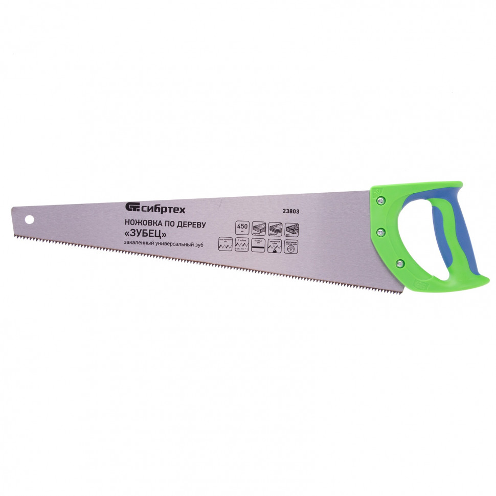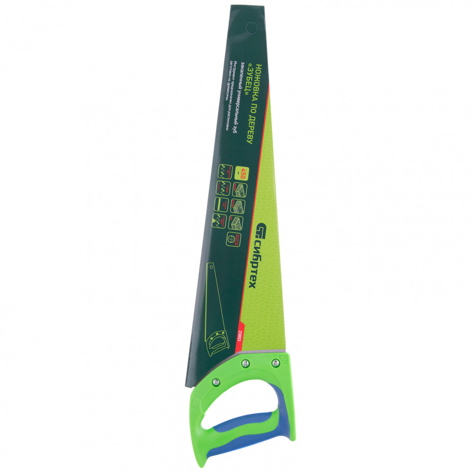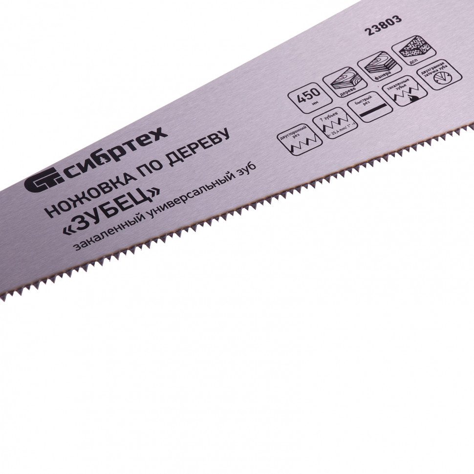 Ножовка по дереву "Зубец", 450 мм, 7-8 TPI, каленый зуб 2D, двухкомпонентная рукоятка Сибртех