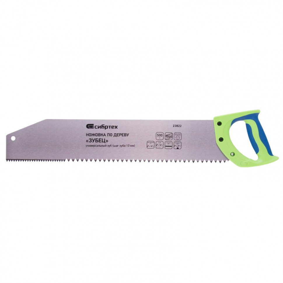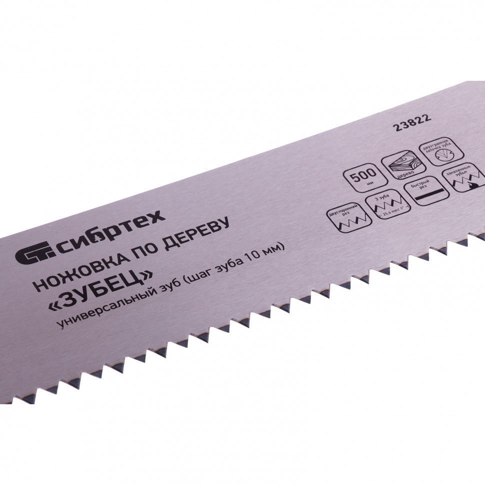 Ножовка по дереву "Зубец", 500 мм, шаг зуба 10 мм, каленый зуб 2D, двухкомпонентная рукоятка Сибртех