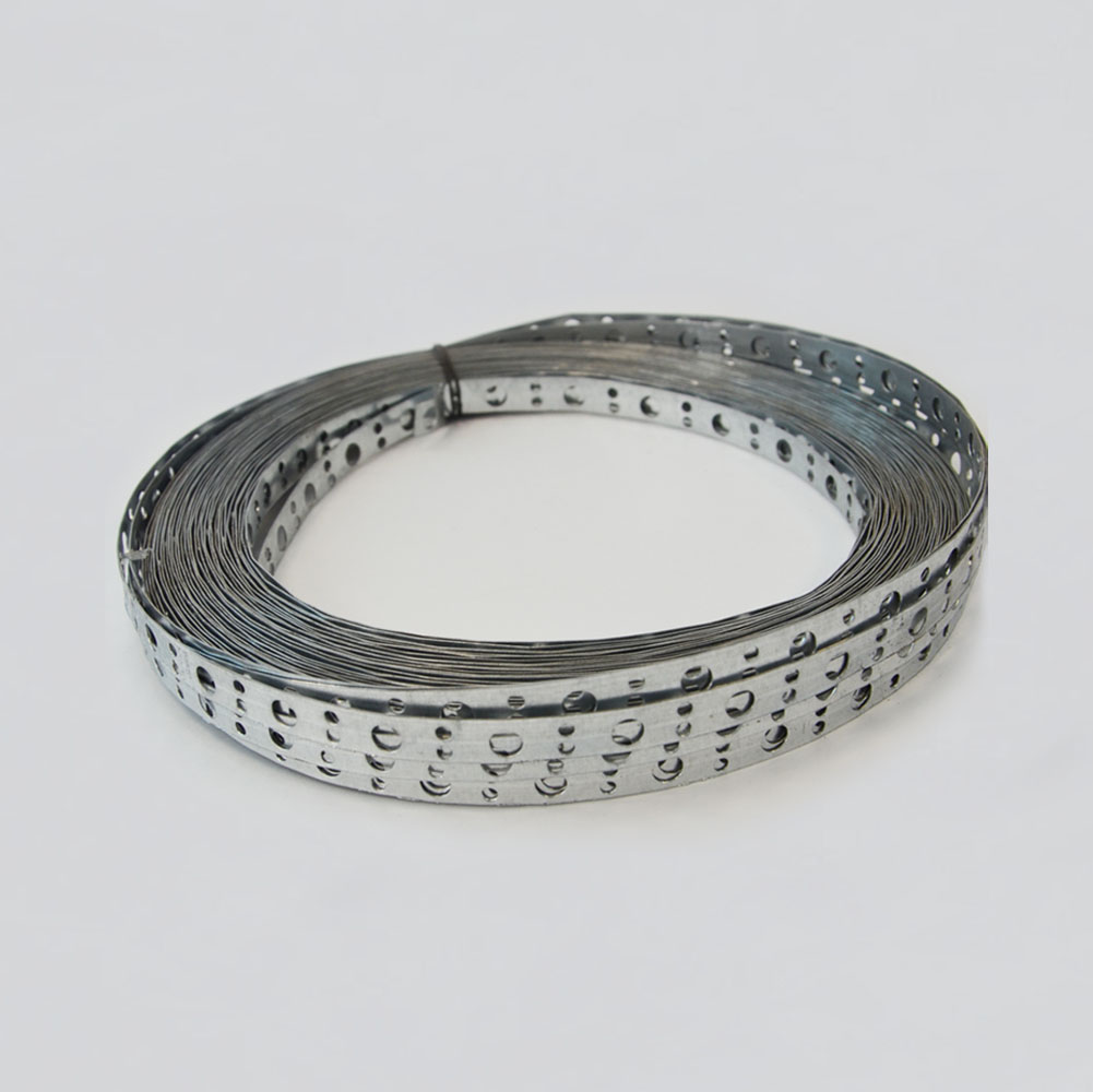 Перфорированная лента для вентиляции прямая LP_V - стальная лента прямая, предназначена для стягивания, поддержки, фиксации различных монтируемых элементов и конструкций. Изготавливается из низкоуглеродистой стали и обрабатывается цинком. По все длине ленты равномерно распределены крепежные отверстия. Пприменяется в строительстве, сантехническом деле, при прокладке кабелей или труб кондиционирования, а так же может выступать в роле хомута. При помощи ленты можно крепить не тяжелые элементы.