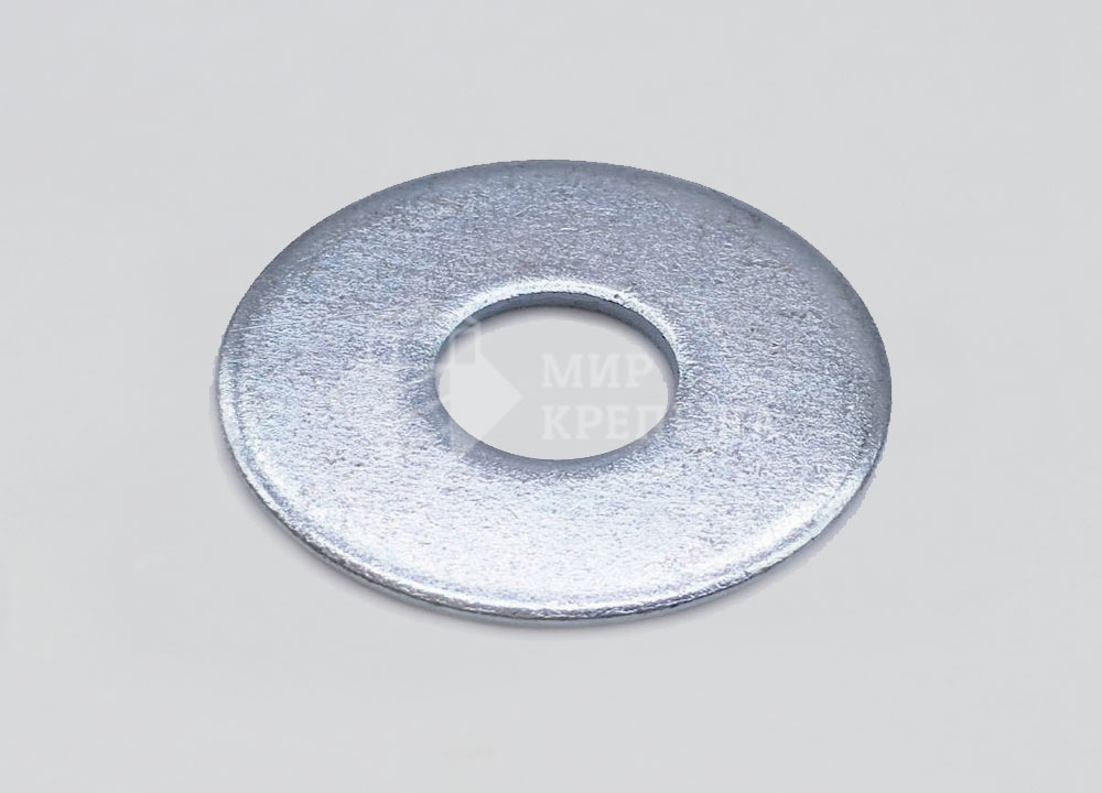 Шайба увеличенного размера используется в соединениях где необходимо защитить тонкостенные материалы за счет распределения давления на большую площадь. Покрытие из цинка защищает изделия от воздействия влаги.