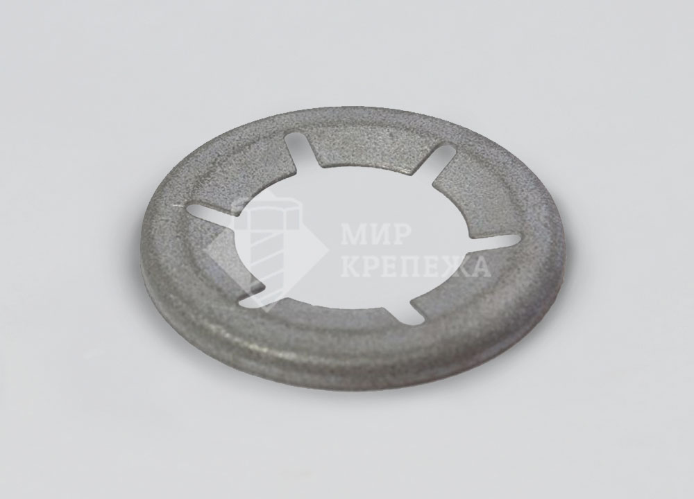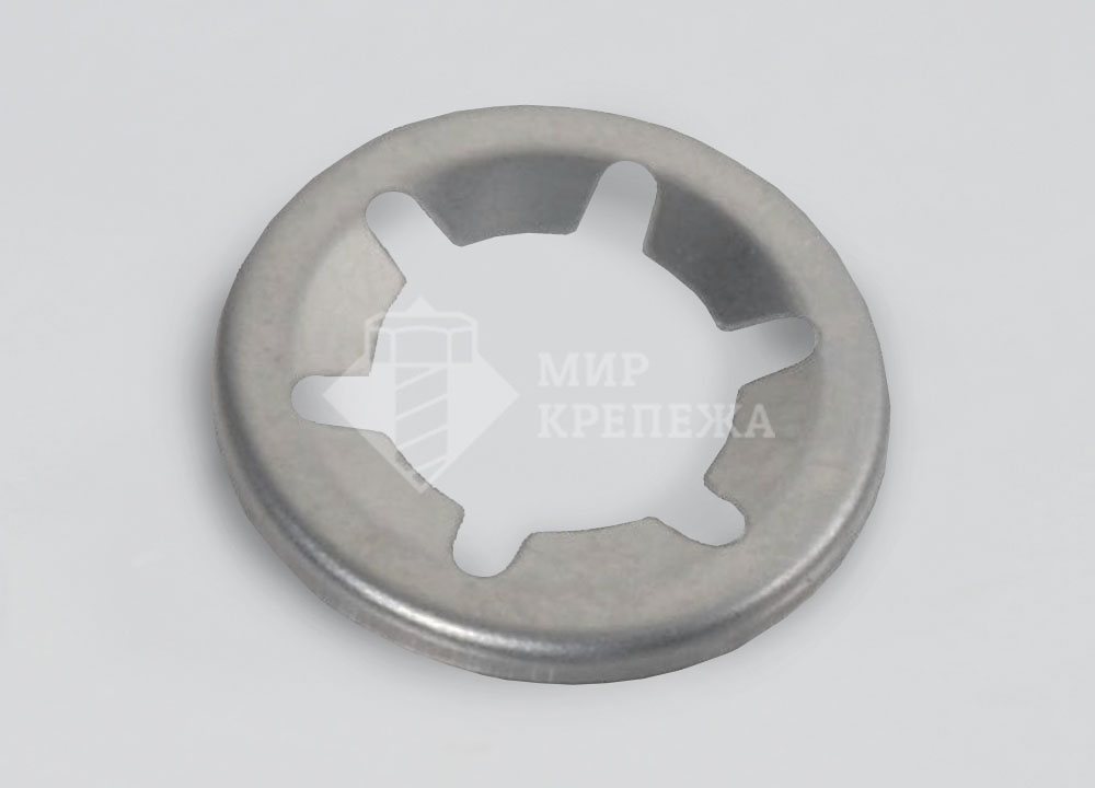 Шайба ART 88122 - шайба по форме напоминает кольцо, в центре которого, имеется отверстие с прорезями к краям шайбы, что образует стопорные лепестки. В качестве материала для изготовления используется пружинная сталь. Стопорная шайба DIN 88122 применяется в качестве фиксатора для цилиндрических валов. Конструкция детали обеспечивает креплению пружинную фиксацию и не требует специального инструмента для монтажа.