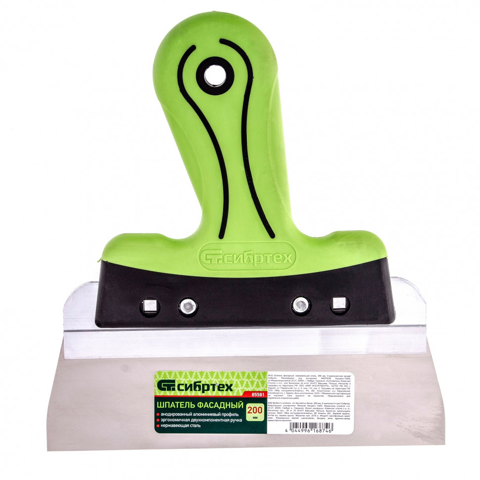 Шпатель фасадный, нержавеющая сталь, 200 мм, двухкомпонентная ручка Сибртех