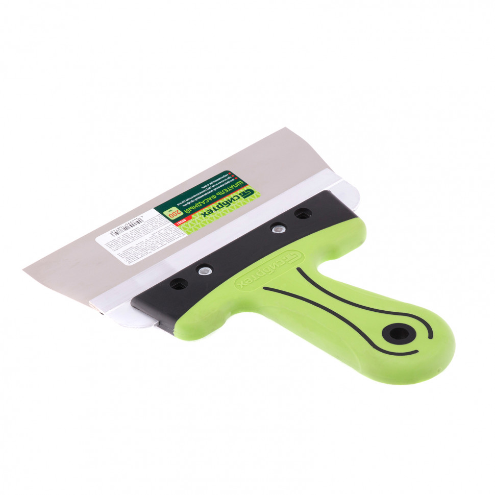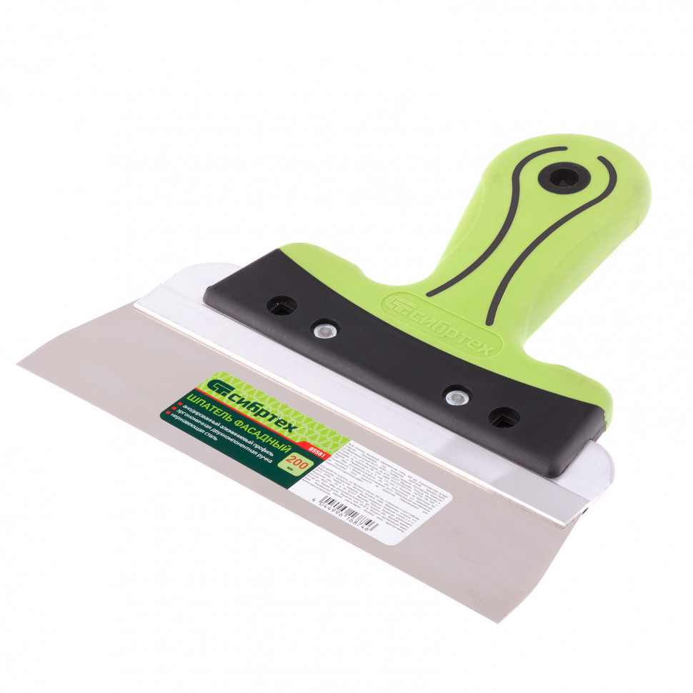 Фасадный шпатель Сибртех 85581 с рабочим полотном шириной 200 мм из нержавеющей стали и 2-компонентной рукояткой предназначен для нанесения, выравнивания и сглаживания отделочных составов, а также проведения других ремонтно-отделочных работ. Инструмент оптимально подходит для заглаживания зашпаклеванных швов.