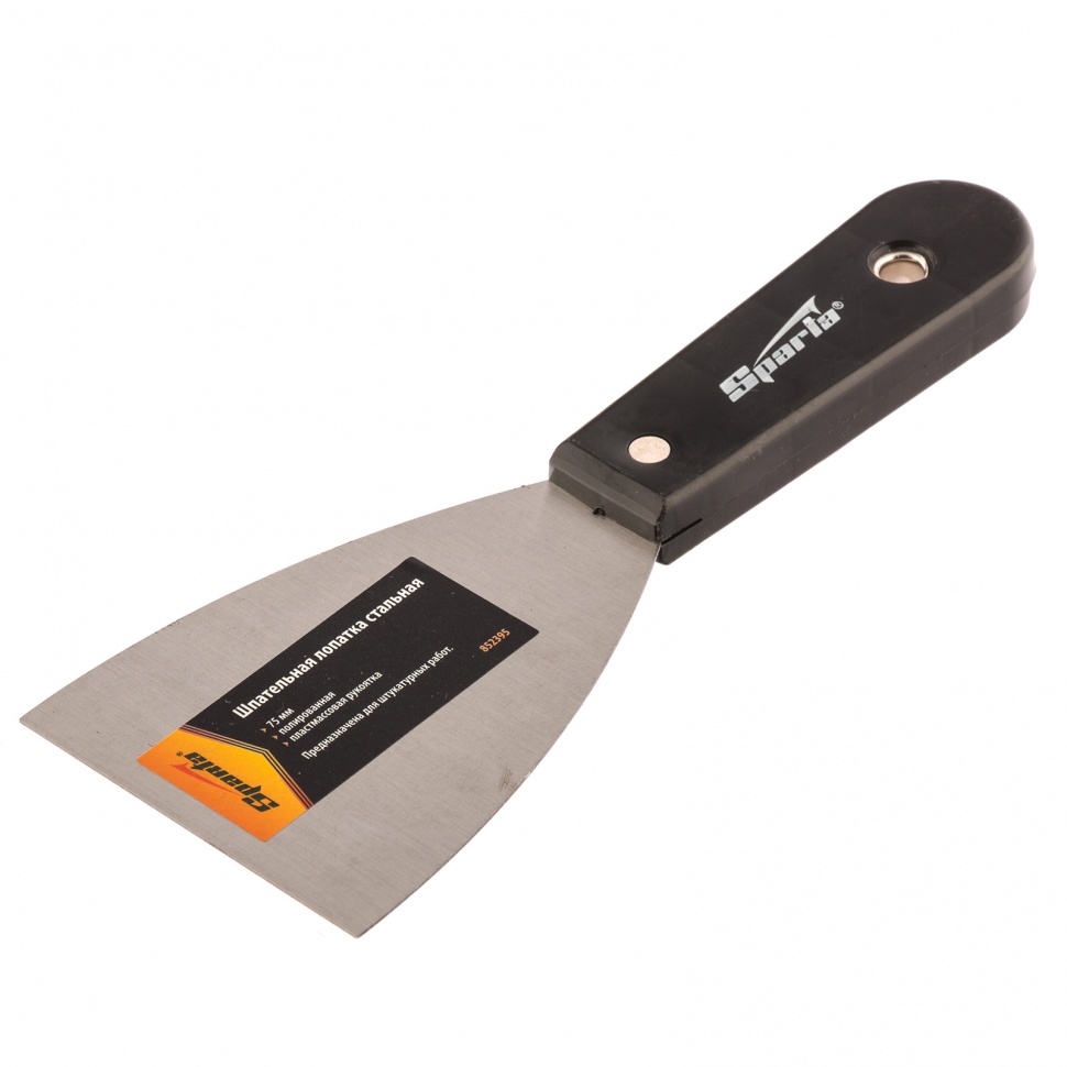 Шпательная лопатка стальная, 75 мм, полированная, пластмассовая ручка Sparta