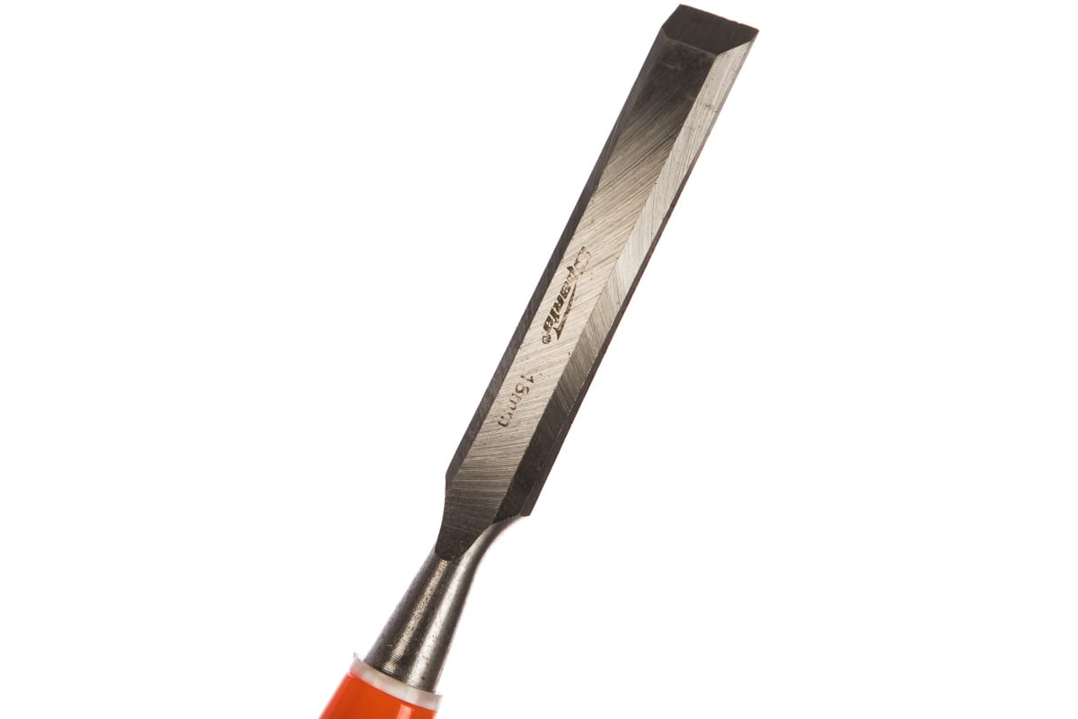 Плоская стамеска Sparta 244205 с шириной лопасти 18 мм и пластиковой рукояткой предназначена для тонких работ по дереву. Она позволяет зачищать пазы и кромки, снимать фаски, вырезать небольшие прямоугольные углубления. Стамеска применяется в столярном деле, мебельном производстве, а также будет полезна в быту.ПреимуществаПолотно выполнено из качественной конструкционной углеродистой стали 55, поэтому обладает высокой прочностью и хорошими режущими свойствами.Твердость стамески составляет 50-55 HRC на длине 2/3 рабочей части полотна, что позволяет режущей кромке долго не тупиться.Благодаря заточке на специальном оборудовании под углом 20-35° обеспечивается высокая острота лезвия и точность работ.Прочную пластмассовую рукоятку удобно держать в руке, поэтому работать со стамеской комфортно.Яркий цвет рукоятки не даст стамеске затеряться в рабочем пространстве.