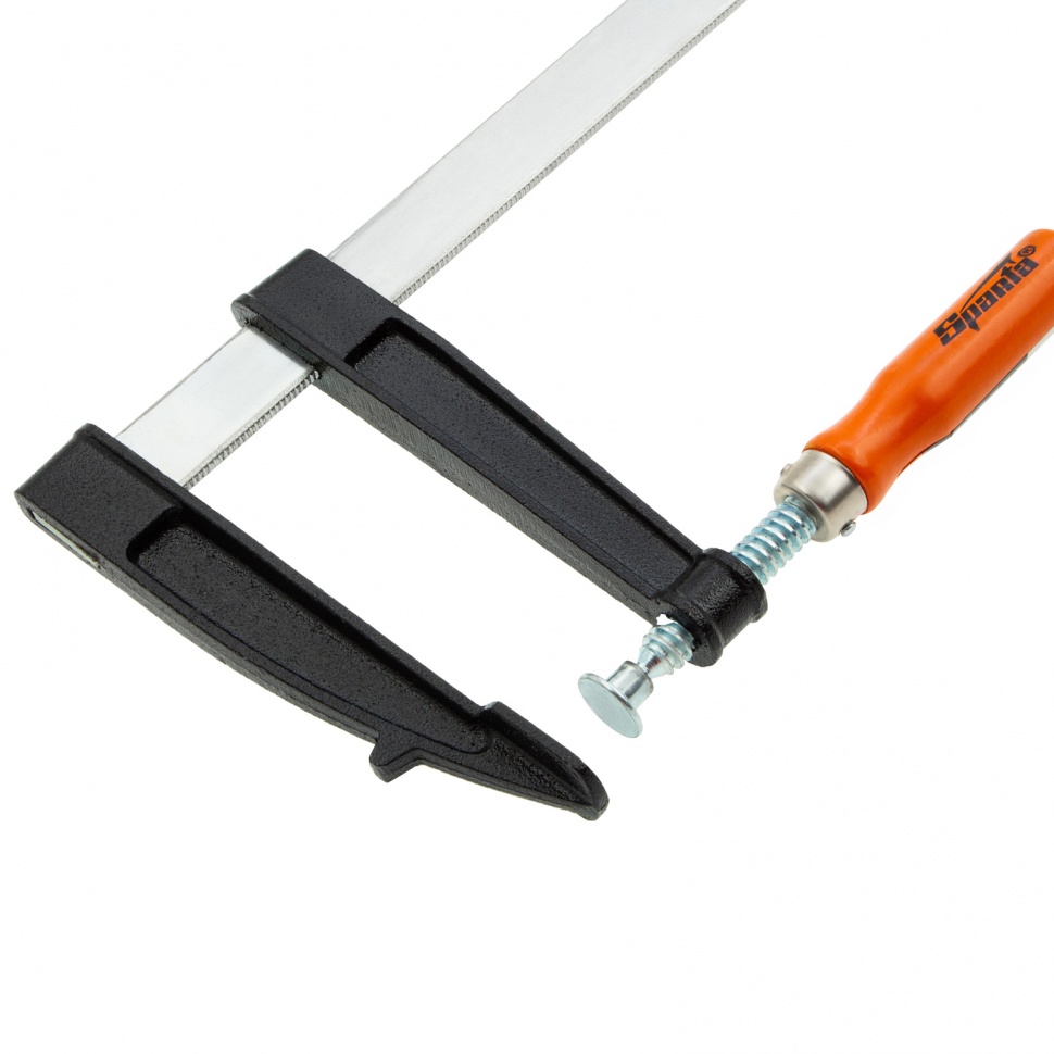 F-образная струбцина Sparta 204475, 1000 х 120 х 1050 мм, используется в столярном и слесарном деле и позволяет фиксировать заготовки из металла, древесины и других материалов для их соединения или обработки. Деталь помещают между губками, одна из которых подвижна и служит для регулировки величины захвата. Винтовой зажим позволяет прикладывать значительное усилие для надежной фиксации. Защитные накладки предотвращают повреждение детали. Элементы конструкции выдерживают высокую температуру, поэтому струбцина подходит для проведения сварочных работ, при этом пластиковые накладки необходимо снять.ПреимуществаШтанга изготовлена из стали, поэтому обладает повышенной устойчивостью к изгибанию и выдерживает значительные нагрузки.Оцинкованный винт устойчив к коррозии, что увеличивает срок службы инструмента.Удобная деревянная рукоятка надежно лежит в руке, что повышает комфортность работы.