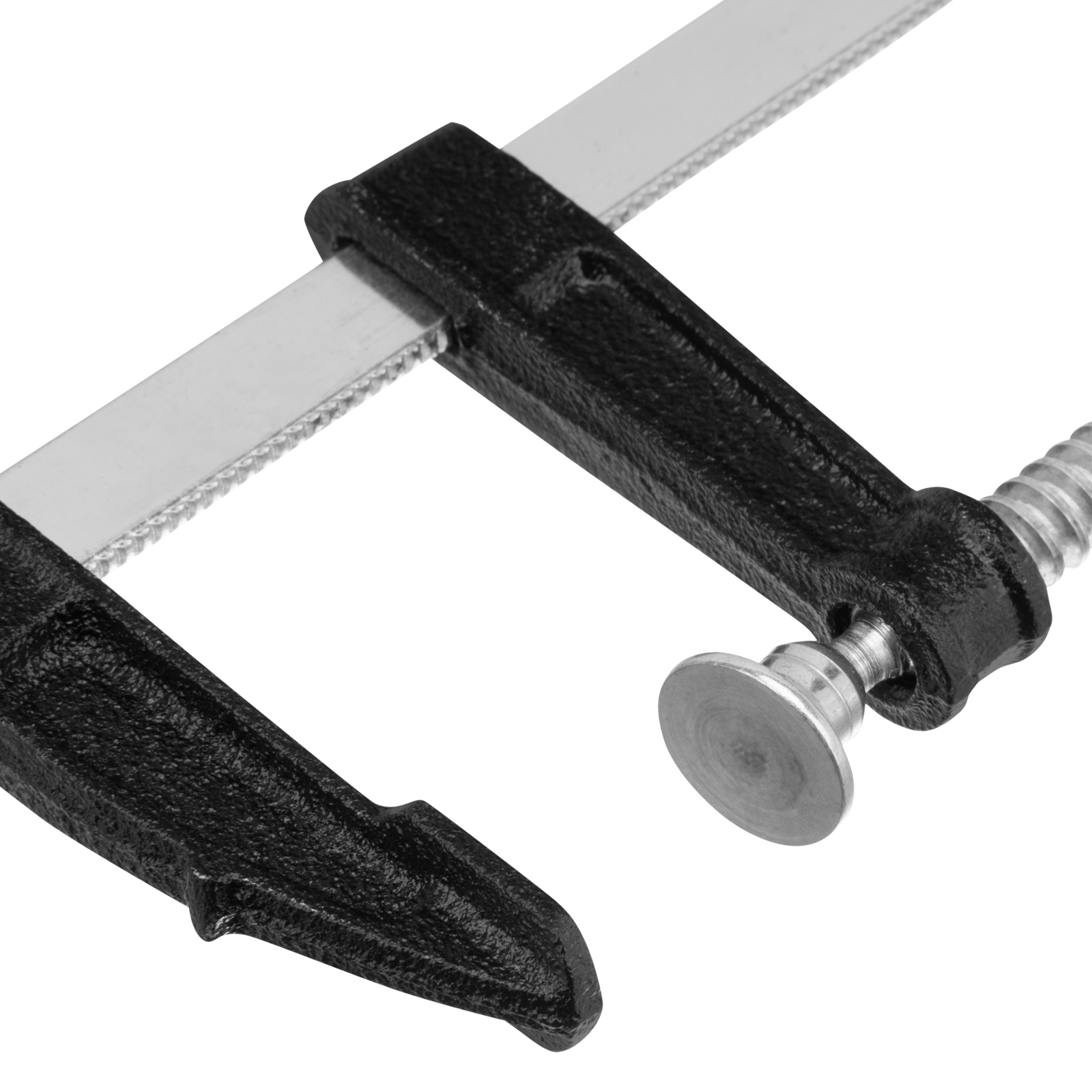 F-образная струбцина Sparta 204295, 250 х 50 х 300 мм, используется в столярном и слесарном деле и позволяет фиксировать заготовки из металла, древесины и других материалов для их соединения или обработки. Деталь помещают между губками, одна из которых подвижна и служит для регулировки величины захвата. Винтовой зажим позволяет прикладывать значительное усилие для надежной фиксации. Защитные накладки предотвращают повреждение детали. Элементы конструкции выдерживают высокую температуру, поэтому струбцина подходит для проведения сварочных работ, при этом пластиковые накладки необходимо снять.ПреимуществаШтанга изготовлена из стали, поэтому обладает повышенной устойчивостью к изгибанию и выдерживает значительные нагрузки.Оцинкованный винт устойчив к коррозии, что увеличивает срок службы инструмента.Удобная деревянная рукоятка надежно лежит в руке, что повышает комфортность работы.