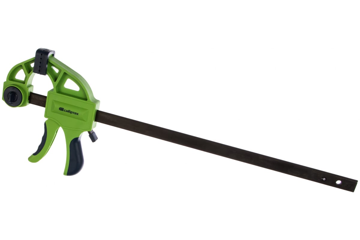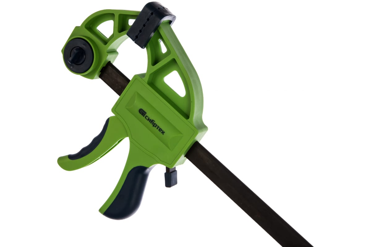 F-образная быстрозажимная струбцина Сибртех 20565, 300 х 70 х 540 мм, в пластиковом корпусе, с фиксатором и двухкомпонентной рукояткой, позволяет зажимать заготовки для их дальнейшей обработки или сборки. Помогает решать множество задач благодаря оптимальной глубине зажима, составляющей 70 мм. Пластинчатый механизм пошагово перемещает подвижную губку вдоль направляющей до достижения максимально плотного захвата детали. Фиксатор препятствует движению губки в обратную сторону. Струбцина пригодится в столярной мастерской, а также будет полезна в быту.ПреимуществаШтанга изготовлена из стали, а корпус — из ударопрочного ABS-пластика, что увеличивает надежность конструкции.На губках имеются накладки, защищающие поверхность зажимаемого предмета от повреждений.Опорную губку можно переставить на другой конец штанги, превратив струбцину в распорный инструмент.Эргономичные двухкомпонентные рукоятки удобно лежат в руке, что обеспечивает комфортность работы.