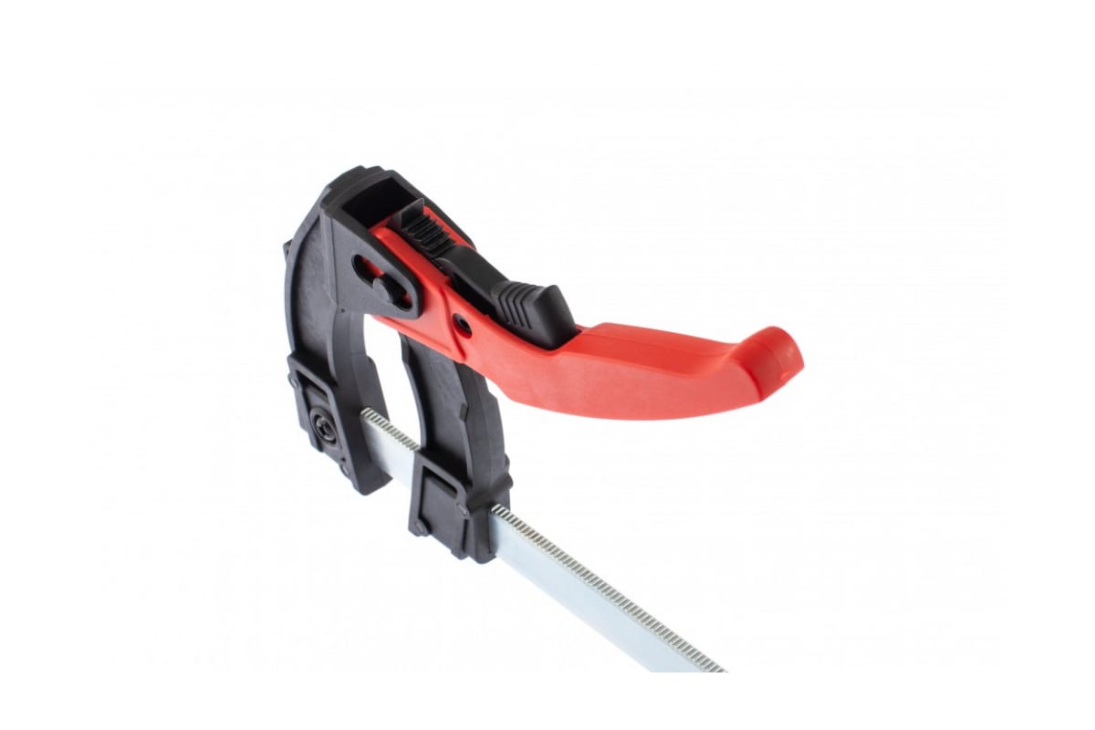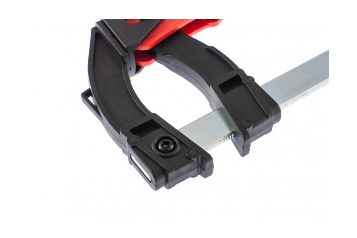 Реечная быстрозажимная струбцина Matrix 20735, 160 х 90 х 240 мм, штанга 5 х 20 мм, с пластиковым корпусом и рычажным храповым механизмом, используется для зажимания и удержания заготовок с целью их скрепления или последующей обработки. Рычажно-храповый механизм позволяет надежно зафиксировать деталь, пошагово перемещая подвижную губку вдоль штанги. Струбцина пригодится при выполнении столярных работ в мастерской, дома или на даче.ПреимуществаСтальная штанга выдерживает значительные нагрузки.Корпус из ударопрочного пластика устойчив к повреждениям и долговечен.Пластиковые губки не повреждают поверхность деревянных заготовок.