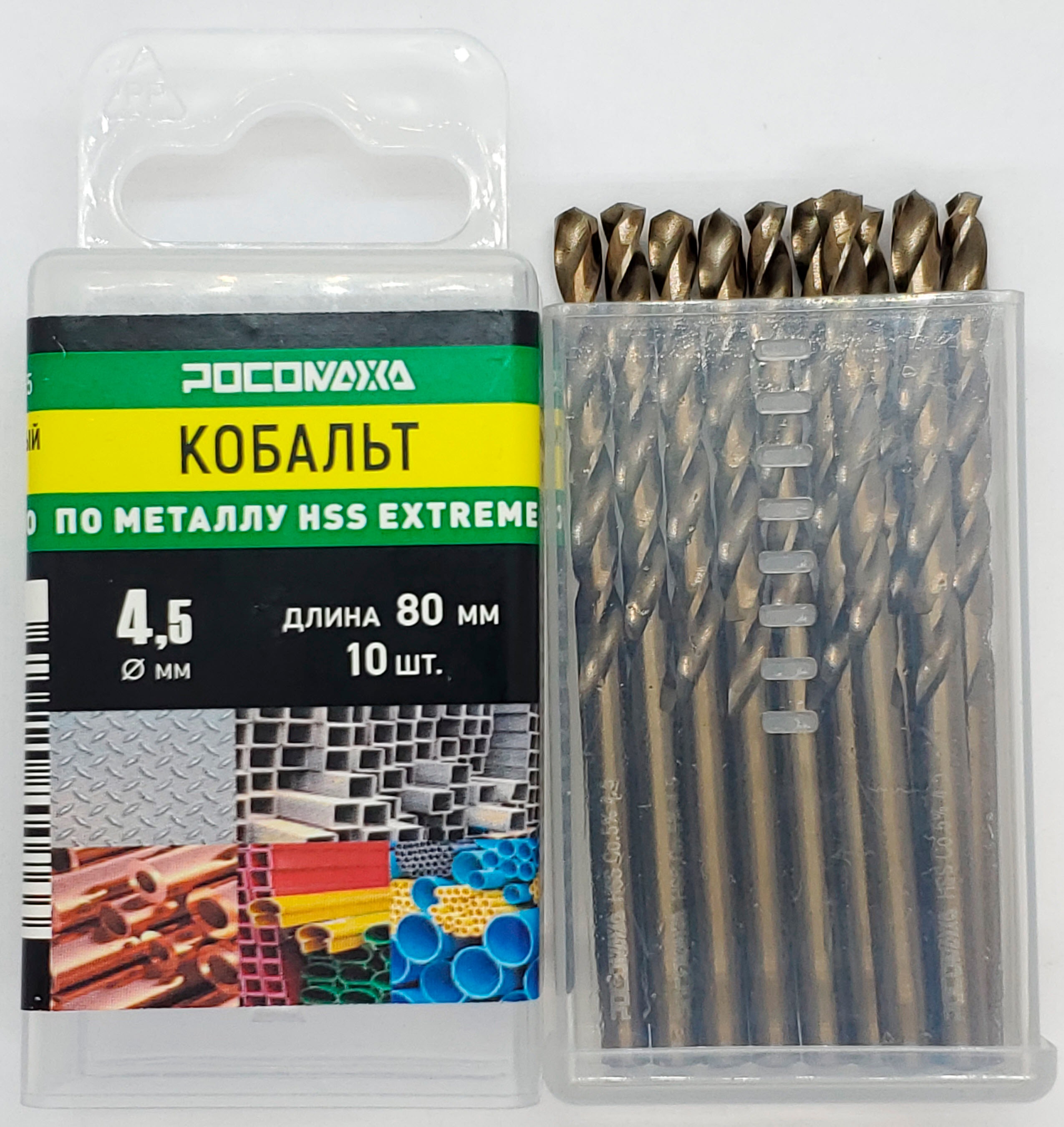 Сверло по металлу 4,5х80 мм (10 шт.) Extreme COBALT 5% (HSS-G P6M5K5) "РОСОМАХА"
