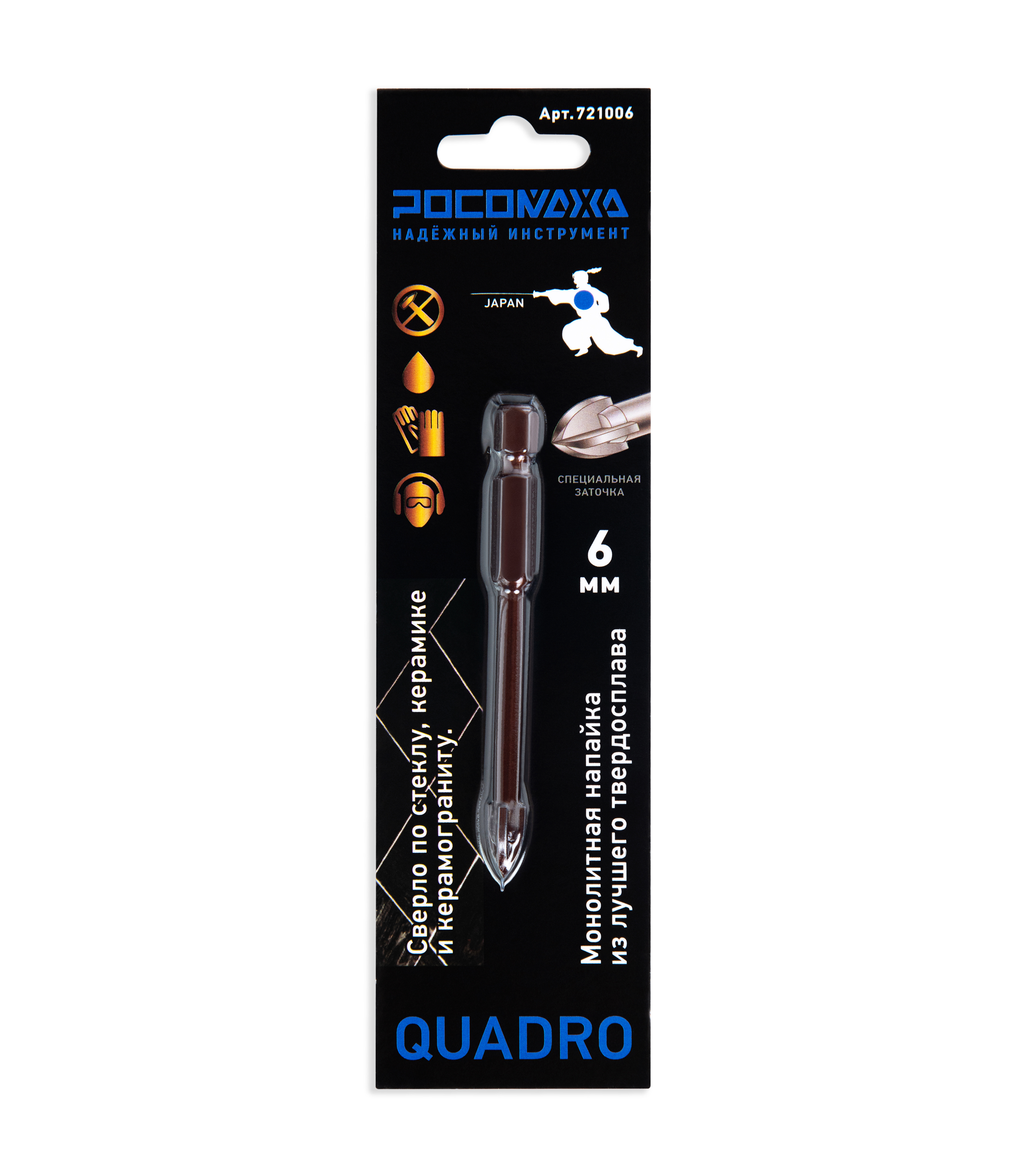Сверло по стеклу, керамике и керамограниту 4 режущие грани 6 мм "РОСОМАХА"