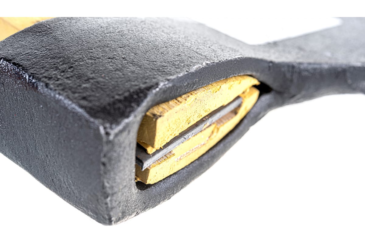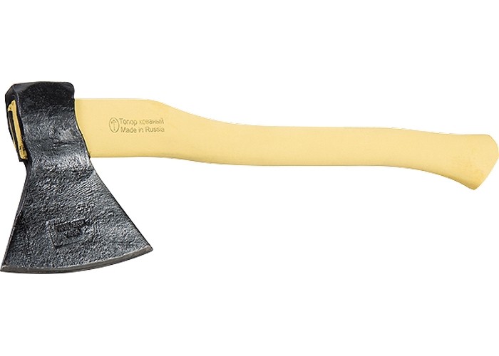 Кованый топор-колун Труд 21846, 1350/1600 г, с деревянным топорищем длиной 500 мм, облегчает колку древесины. Благодаря ему можно быстро подготовить большое количество дров. За счет простой, но функциональной конструкции инструмент не застревает в материале.ПреимуществаВысококачественная инструментальная сталь 65Г, из которой выполнена голова топора, придает ему прочность и стойкость к высоким нагрузкам.Твердость режущей кромки составляет 50 HRC, благодаря чему она долго сохраняет остроту.Топор-колун не подвержен сколам и трещинам за счет метода изготовления — он выкован из цельнометаллической заготовки.Полотно покрыто лаком, таким образом достигается его защита от коррозии.Клин в месте всада предотвращает смещение топорища в процессе эксплуатации.Деревянное топорище выполнено из березы, отшлифовано, покрыто шпатлевкой и пленкой для защиты от влаги.Топорище средней длины 500 мм и весом 1,6 кг способствуют мощному удару, что повышает эффективность работы.