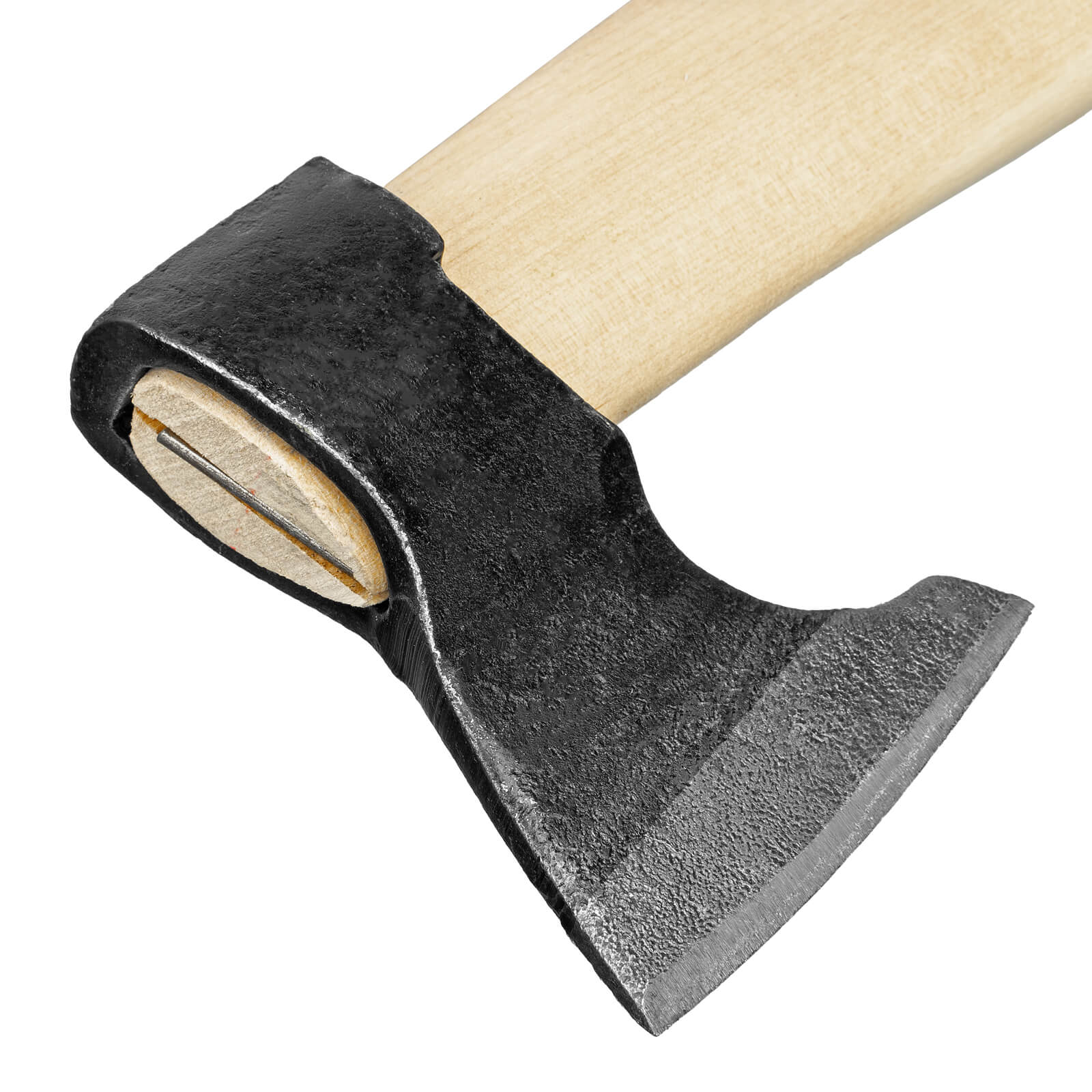 Топор «Туристический» 21666 с рабочей частью весом 630 и топорищем 400 мм, вес в сборе 900 г, станет незаменимым помощником в походе. Благодаря ему можно произвести рубку и тесание древесины. Простой, но функциональный инструмент пригодится в хозяйстве для рубки кустов и сучьев, заострения колышков и выполнения других работ.ПреимуществаГолова топора выполнена из прочной стали 60Г и закалена.Топор полностью готов к работе, т.к. был заточен на заводе.Для исключения сползания полотна в месте всада предусмотрен стальной клин.Топорище из березы пропитано олифой, удобно ложится в руки и отличается устойчивостью к воздействию влаги.Инструмент легко транспортировать в сумке-переноске или рюкзаке благодаря небольшой длине рукоятки 400 мм и небольшому весу 900 г.