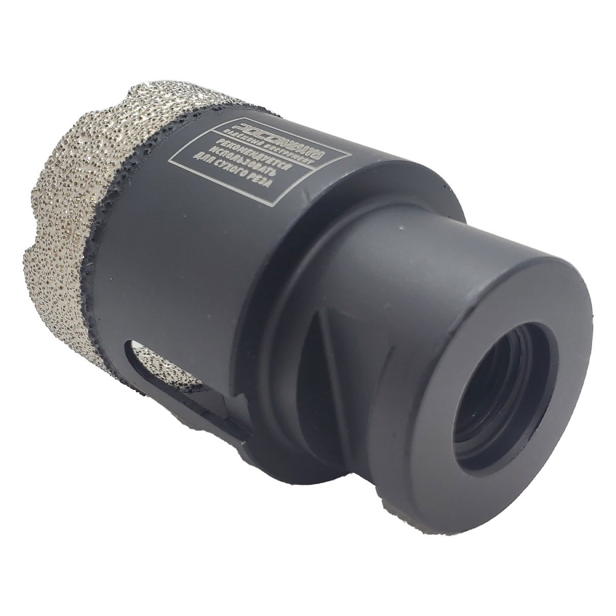 Универсальная алмазная коронка «РОСОМАХА» применяется для сухого сверления керамогранита наивысшего класса твердости, камня, мрамора, керамики, бетона, кирпича, ограниченного листового металла, дерева и комбинации всех этих материалов. Глубина сверления — 35 мм. Высокая плотность и равномерное расположение алмазов на рабочей кромке гарантируют эффективную работу и продолжительный срок службы оснастки. ВАЖНАЯ ИНФОРМАЦИЯ! Непрерывно сверлить не более 5 секунд + охлаждать воском, а не водой, так как использование воды для охлаждения существенно снижает ресурс.
