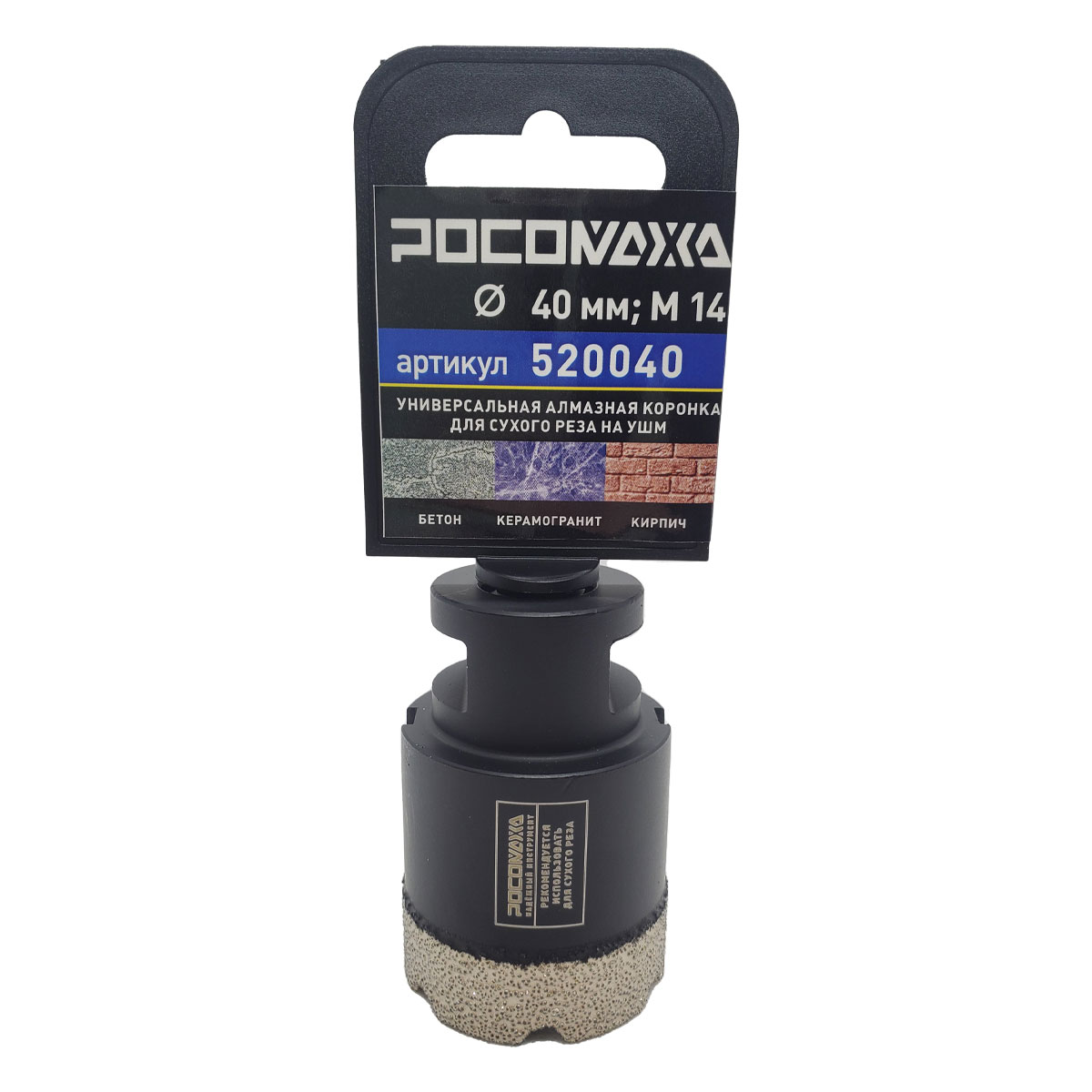 Универсальная алмазная коронка (40 мм; М14) для сухого реза на УШМ "РОСОМАХА"
